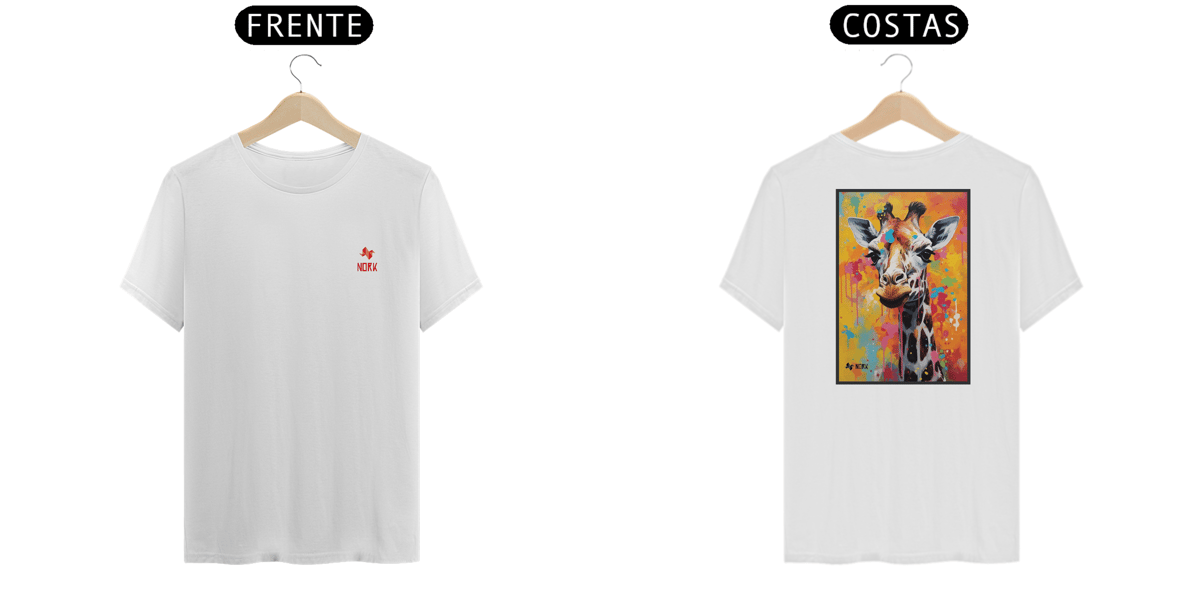Esta camisa da Coleção Nork Animal Planet apresenta uma girafa estilizada com uma explosão de cores e traços artísticos. O fundo em tons vibrantes de laranja, amarelo, rosa e azul, com respingos e manchas abstratas, cria uma atmosfera alegre e enérgica. A girafa, com detalhes realistas e um toque lúdico, é retratada de maneira carismática, com um olhar amigável e expressivo que cativa de imediato. A combinação de realismo e arte abstrata torna esta peça uma escolha cheia de personalidade e estilo.