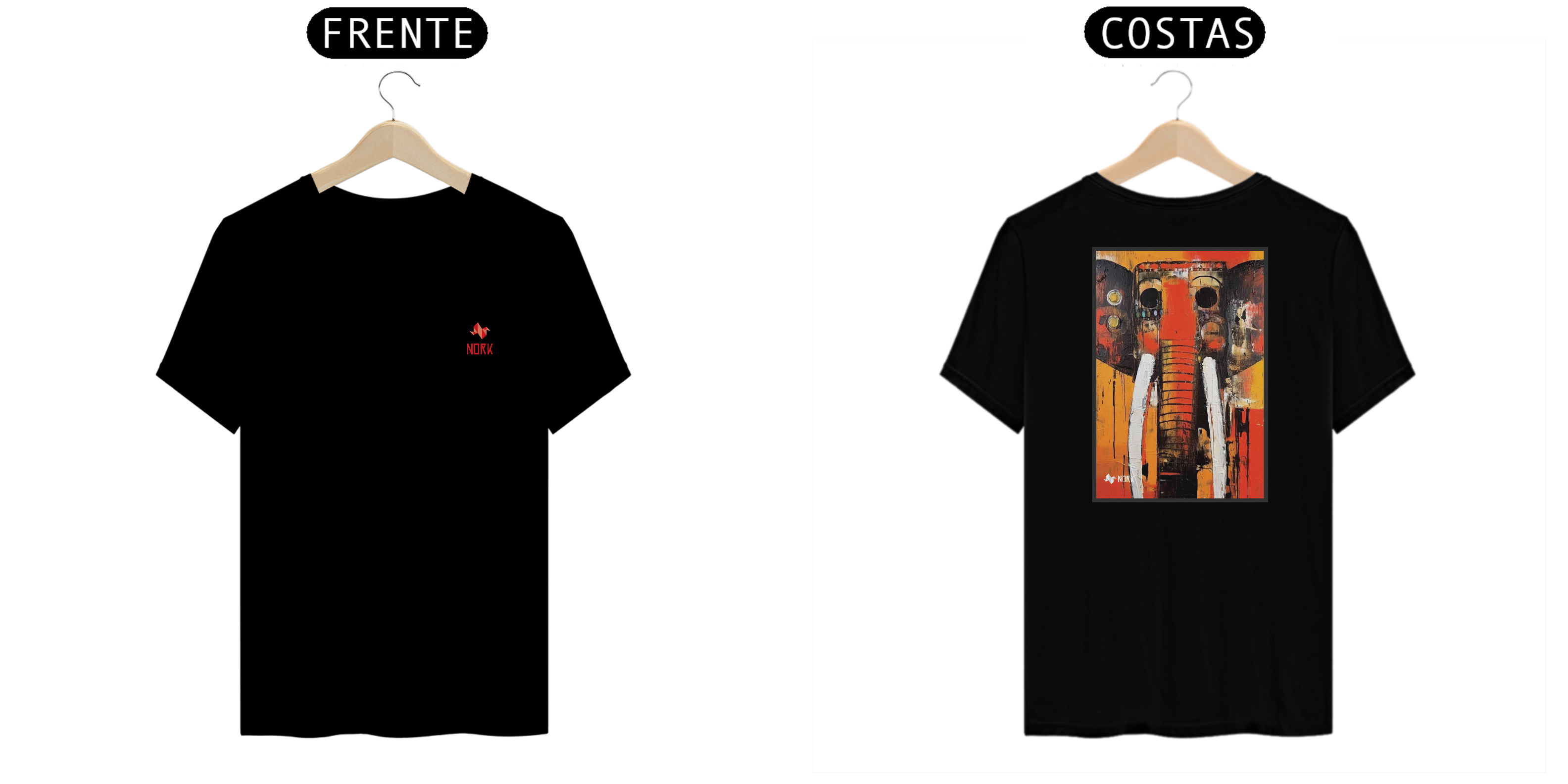 Esta peça da Coleção Nork Animal Planet apresenta uma arte abstrata de um elefante poderoso, com traços marcantes e uma paleta de cores quentes e intensas. O fundo em tons de laranja e vermelho transmite energia e força, enquanto os traços escuros e texturas desgastadas adicionam profundidade e expressão à composição. As presas brancas contrastam com o resto da arte, destacando-se como um elemento visual de impacto. A imagem mistura modernidade com simbolismo, representando a majestade e a imponência deste animal icônico.