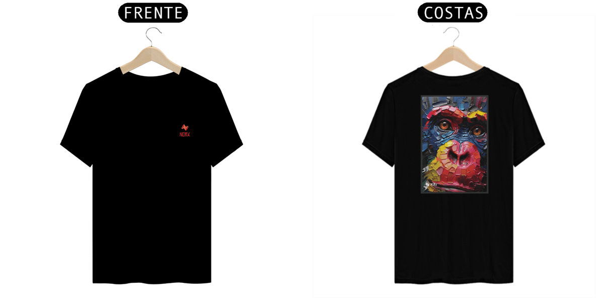 Esta camisa da Coleção Nork Animal Planet apresenta uma arte tridimensional impactante de um macaco, com traços detalhados e uma paleta vibrante de cores. A textura da pintura, composta por camadas espessas e dinâmicas, dá vida ao rosto do animal, misturando tons de azul, vermelho, amarelo e rosa. O olhar penetrante e expressivo do macaco, com olhos em tons alaranjados profundos, é o ponto focal da peça, transmitindo inteligência e uma conexão poderosa. O design combina arte contemporânea com um toque de realismo, tornando esta camisa uma declaração de estilo e personalidade.