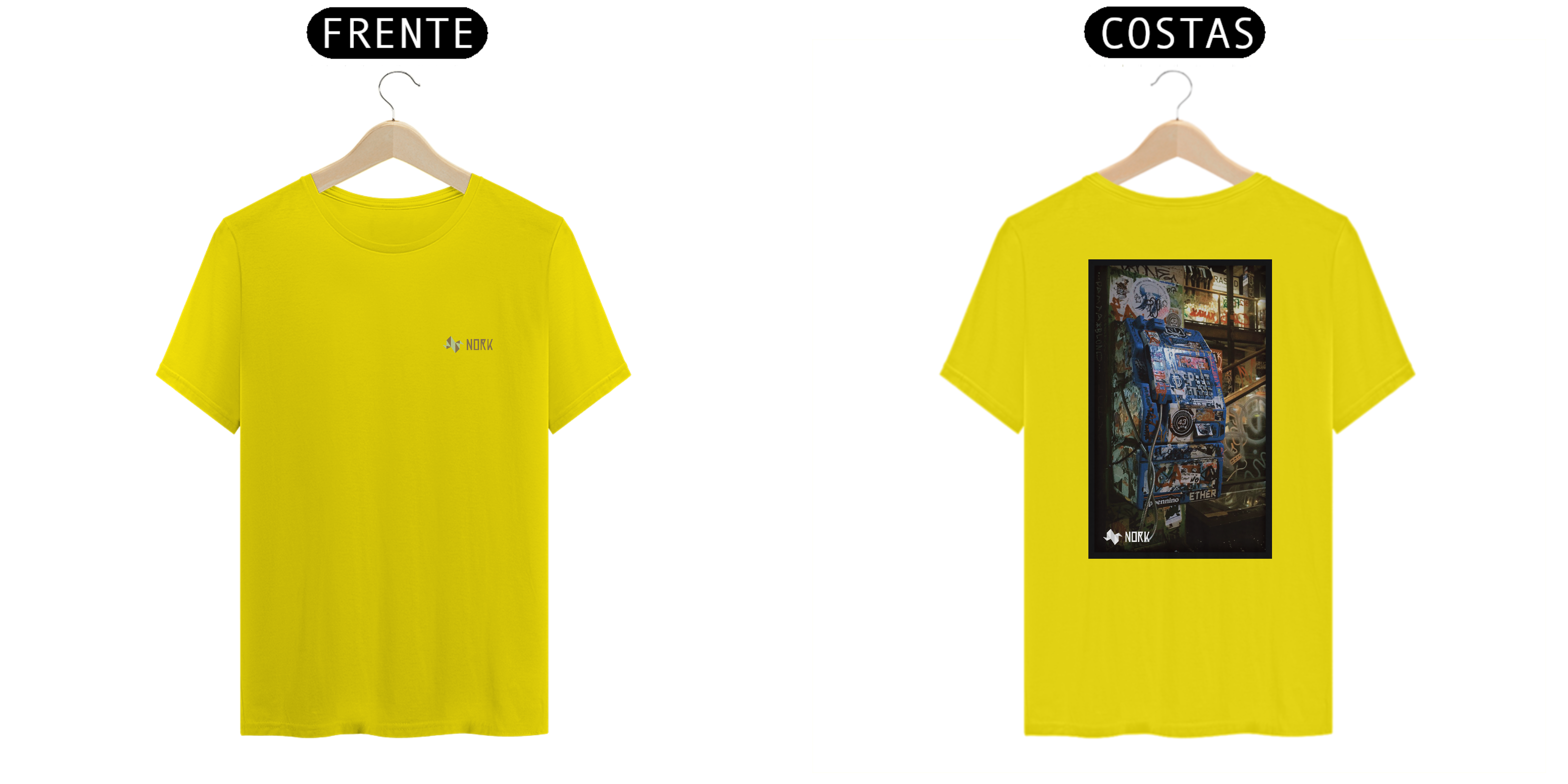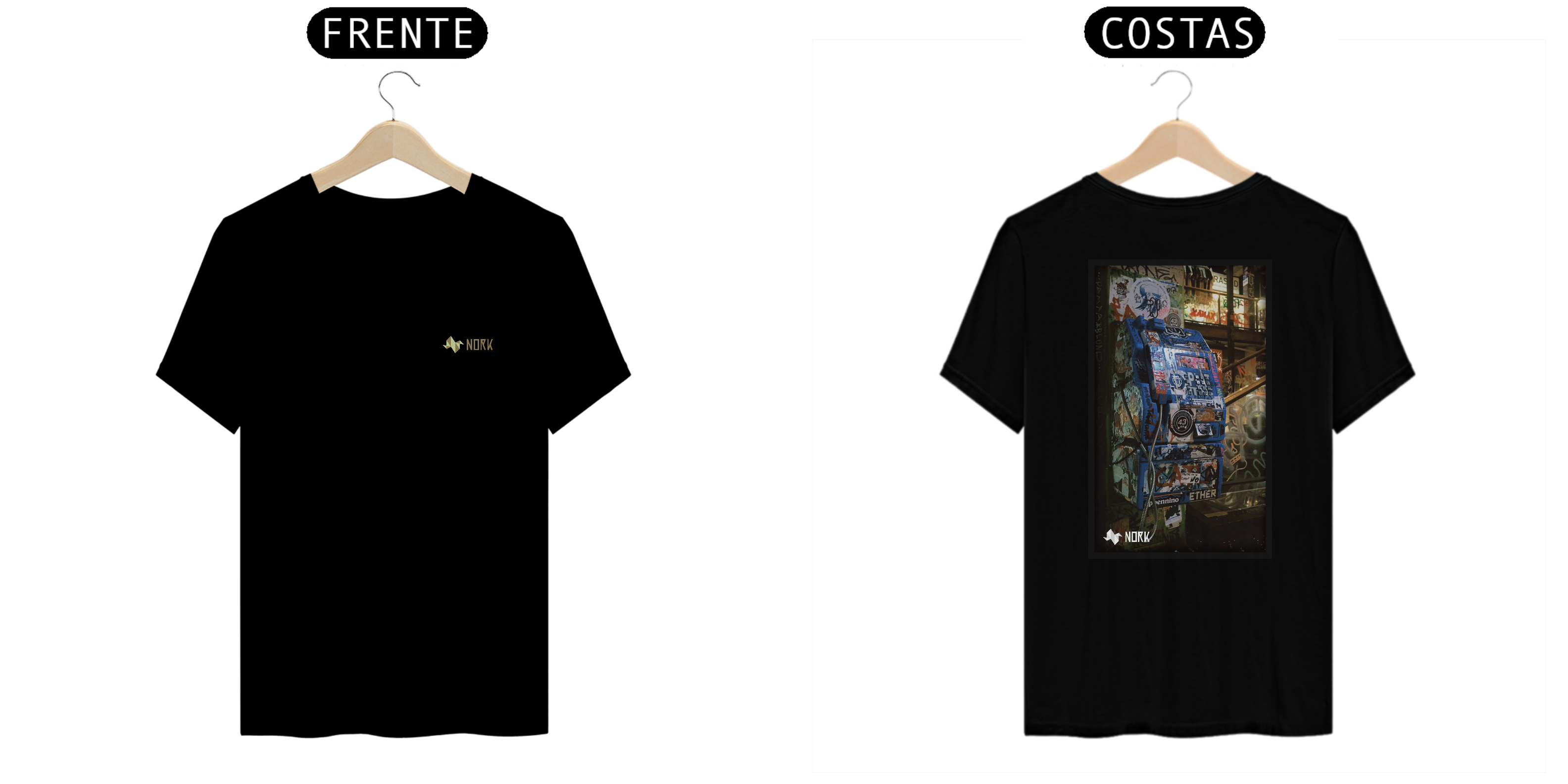 Essa camisa apresenta uma estampa que encapsula a nostalgia e a ressignificação urbana, trazendo um telefone público antigo completamente coberto por adesivos, grafites e intervenções artísticas. O fundo exibe um cenário repleto de texturas, com paredes decoradas por camadas de tinta spray, assinaturas e tags que refletem o caráter caótico e criativo do ambiente urbano.