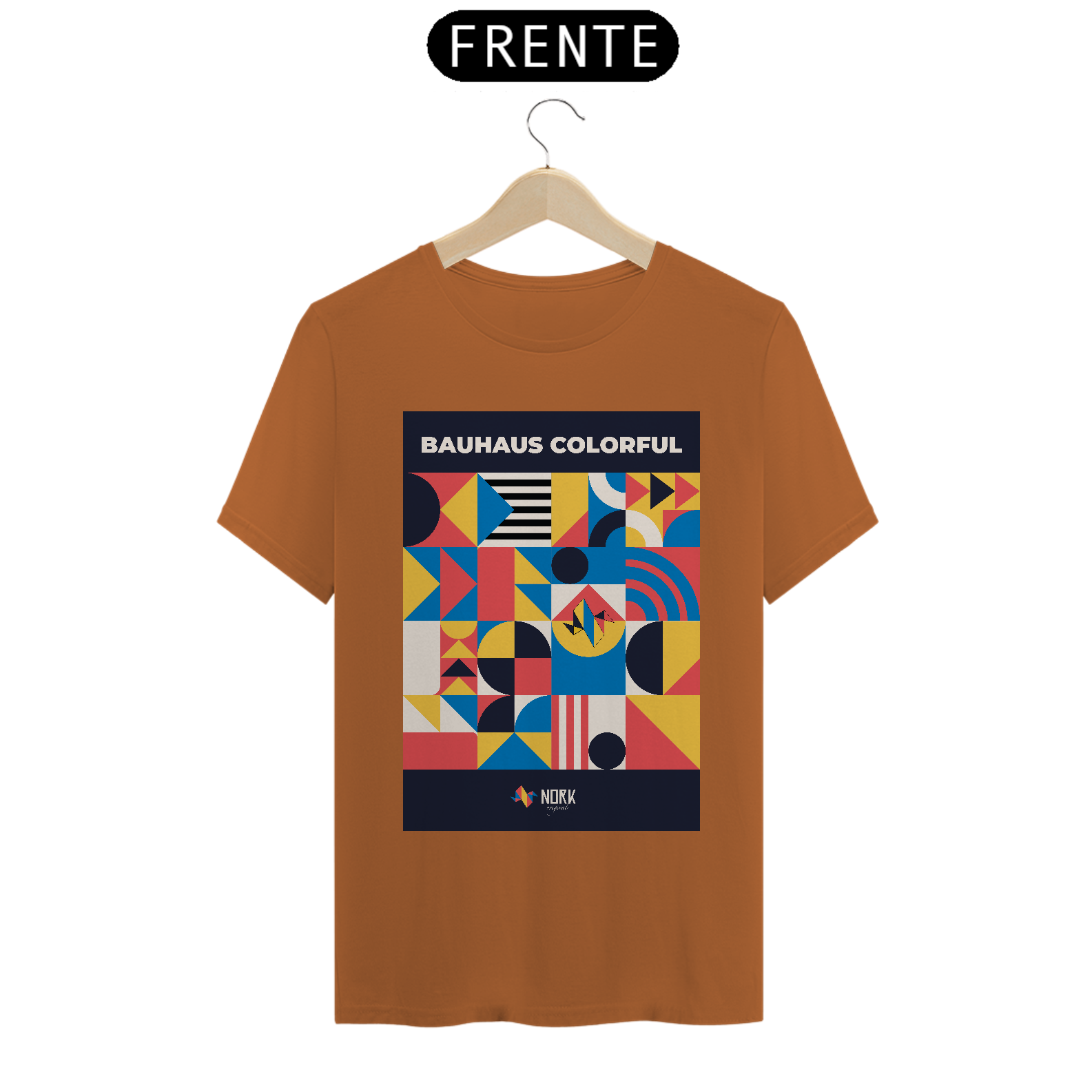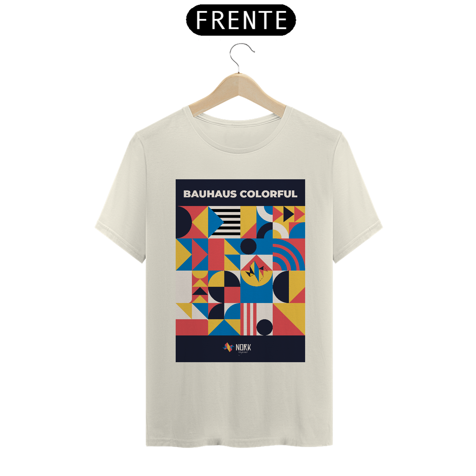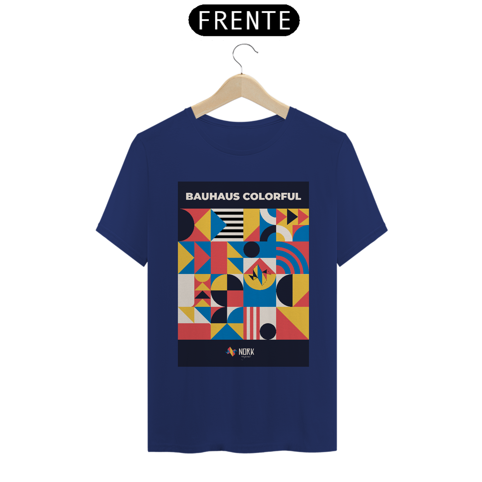 Esta camisa marcante da Coleção Nork Bauhaus apresenta uma vibrante composição de formas geométricas e cores intensas, inspirada no movimento artístico que transformou o design moderno. Círculos, triângulos, semicírculos e retângulos se sobrepõem em um mosaico dinâmico, enquanto a combinação de amarelo, vermelho, azul e branco celebra a essência da Bauhaus: a perfeita harmonia entre arte e funcionalidade.