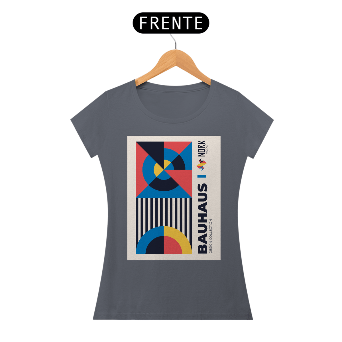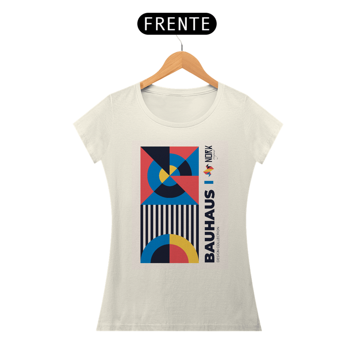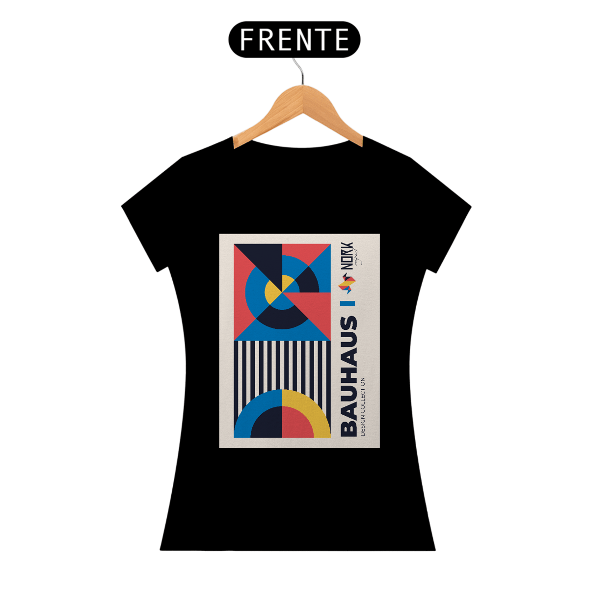 Esta camisa marcante da Coleção Nork Bauhaus destaca-se pela composição de formas geométricas em diferentes proporções, remetendo à essência inovadora do movimento que redefiniu o design moderno. No painel superior, um círculo seccionado em azul, vermelho, amarelo e preto cria um efeito de sobreposição, enquanto a parte central traz faixas verticais contrastantes, evocando um ar de modernidade urbana. A meia-lua colorida na base, dividida em blocos, reforça a ideia de equilíbrio e dinamismo, elementos centrais do universo Bauhaus.