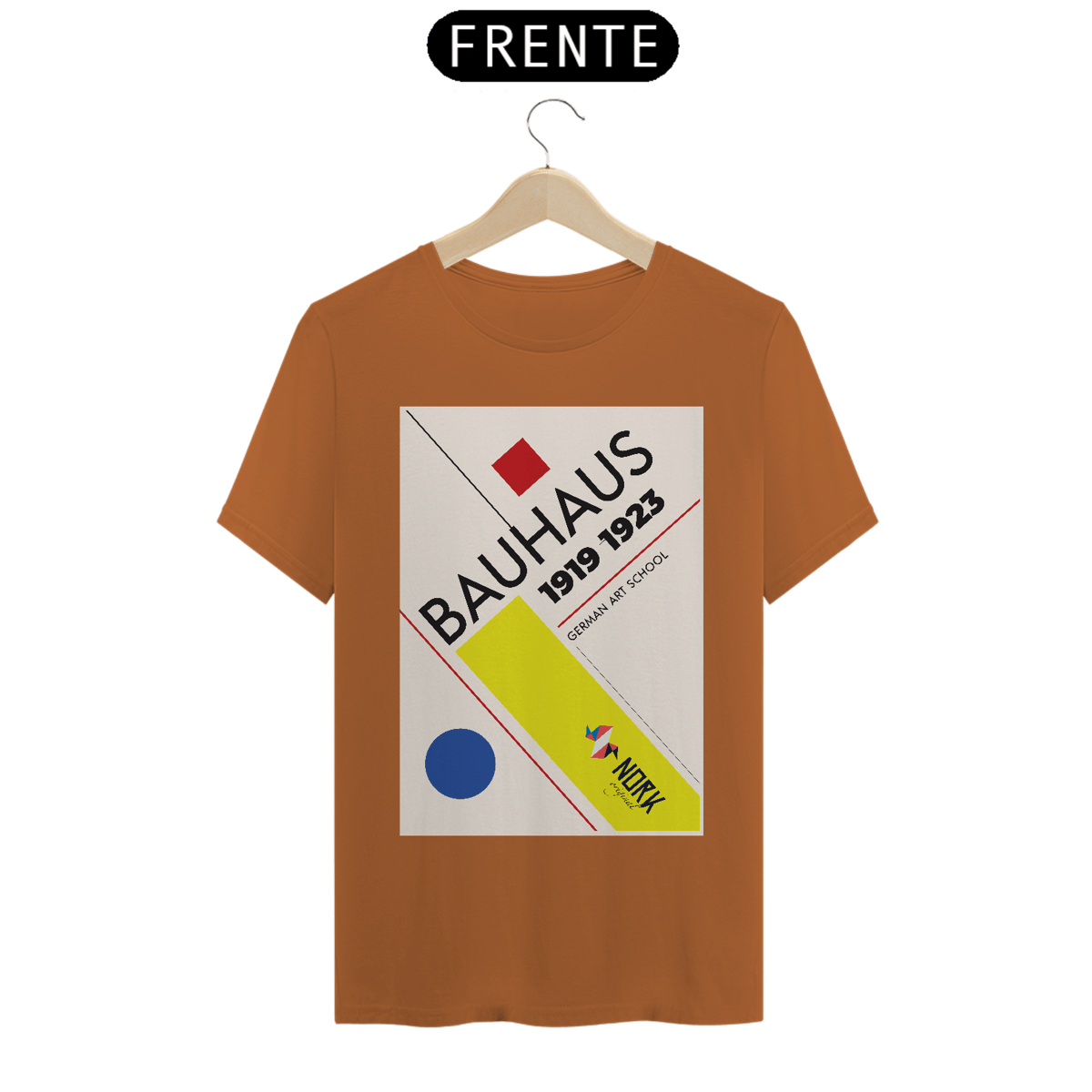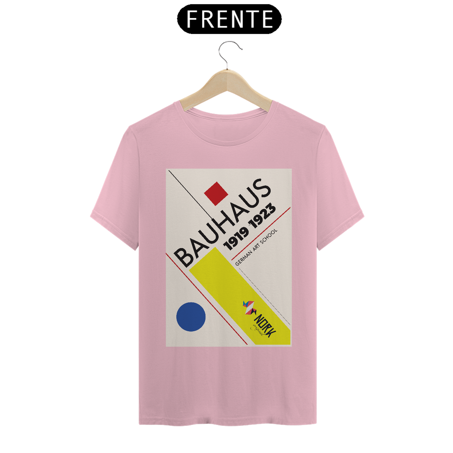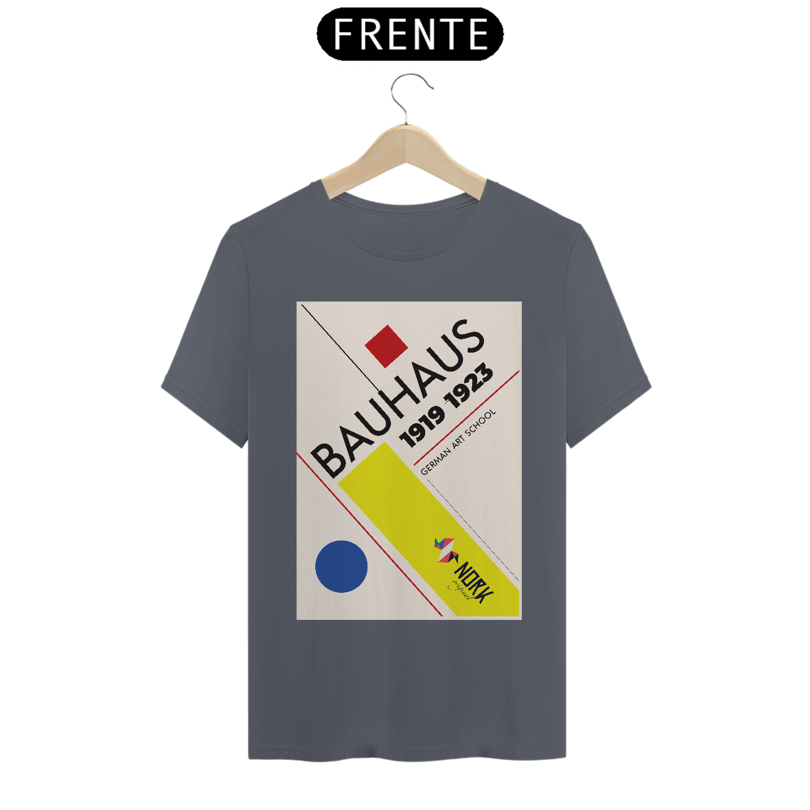 Esta camisa marcante da Coleção Nork Bauhaus evidencia a essência minimalista e icônica do movimento que transformou o design moderno. Linhas diagonais, um círculo azul, um quadrado vermelho e o bloco amarelo central desenham um layout dinâmico, enquanto as inscrições “1919 - 1923” e “German Art School” homenageiam o período e a origem da Bauhaus. A disposição dos elementos em ângulos distintos transmite a ideia de movimento e inovação, evocando a fusão entre arte e funcionalidade.