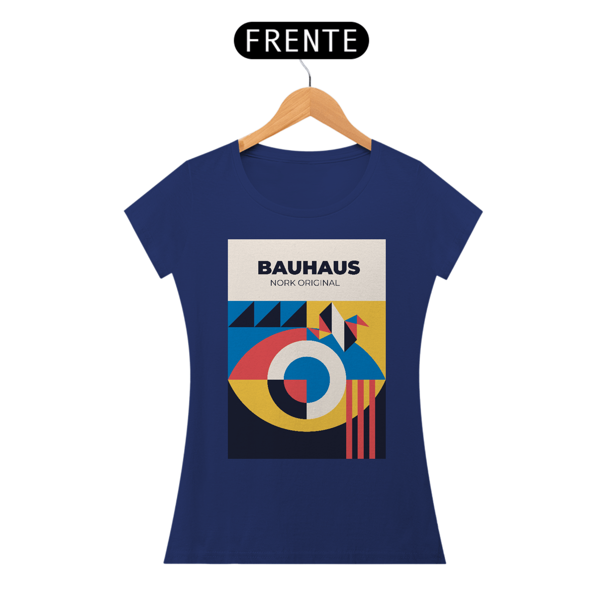 Esta camisa marcante da Coleção Nork Bauhaus apresenta uma composição geométrica que reúne arcos, semicírculos, blocos de cor e um pássaro estilizado, evocando a fusão entre arte e funcionalidade que define o movimento modernista. O uso de amarelo, azul, vermelho e tons neutros em contraste com faixas e recortes cria um visual lúdico e dinâmico, ideal para quem valoriza expressividade no vestuário.