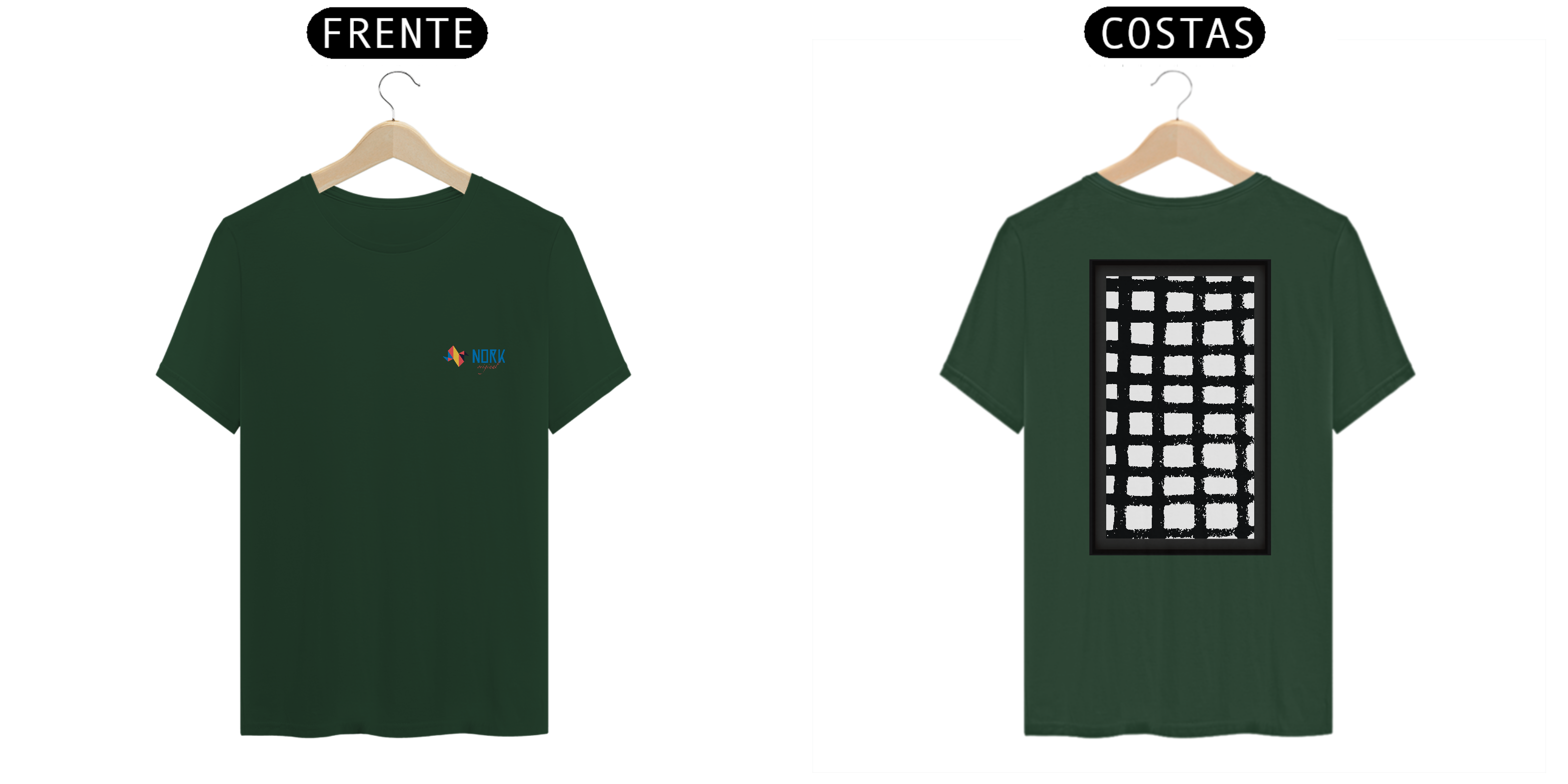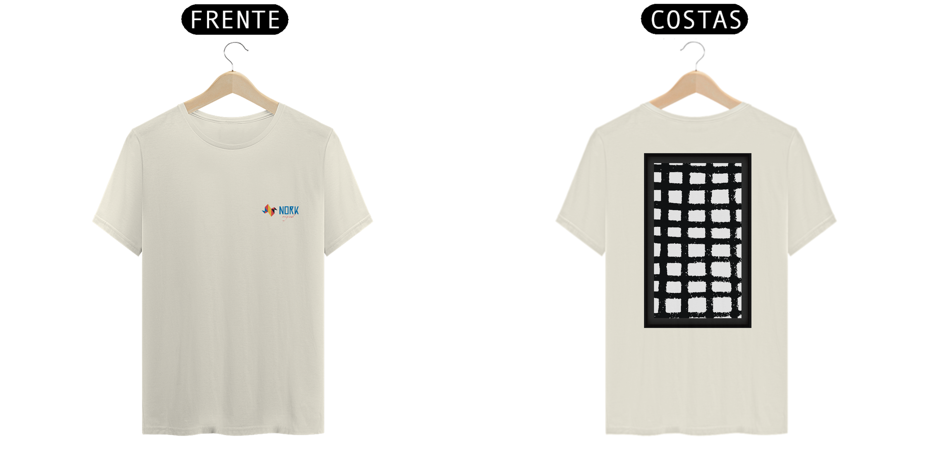 Parte da Coleção Nork Original Terapia, esta camisa apresenta um design minimalista e poderoso, composto por um padrão de grade irregular em preto e branco. As linhas desgastadas e imperfeitas trazem um toque rústico e artesanal, remetendo à "terapia do rabiscar", que transforma movimentos simples e espontâneos em arte significativa.