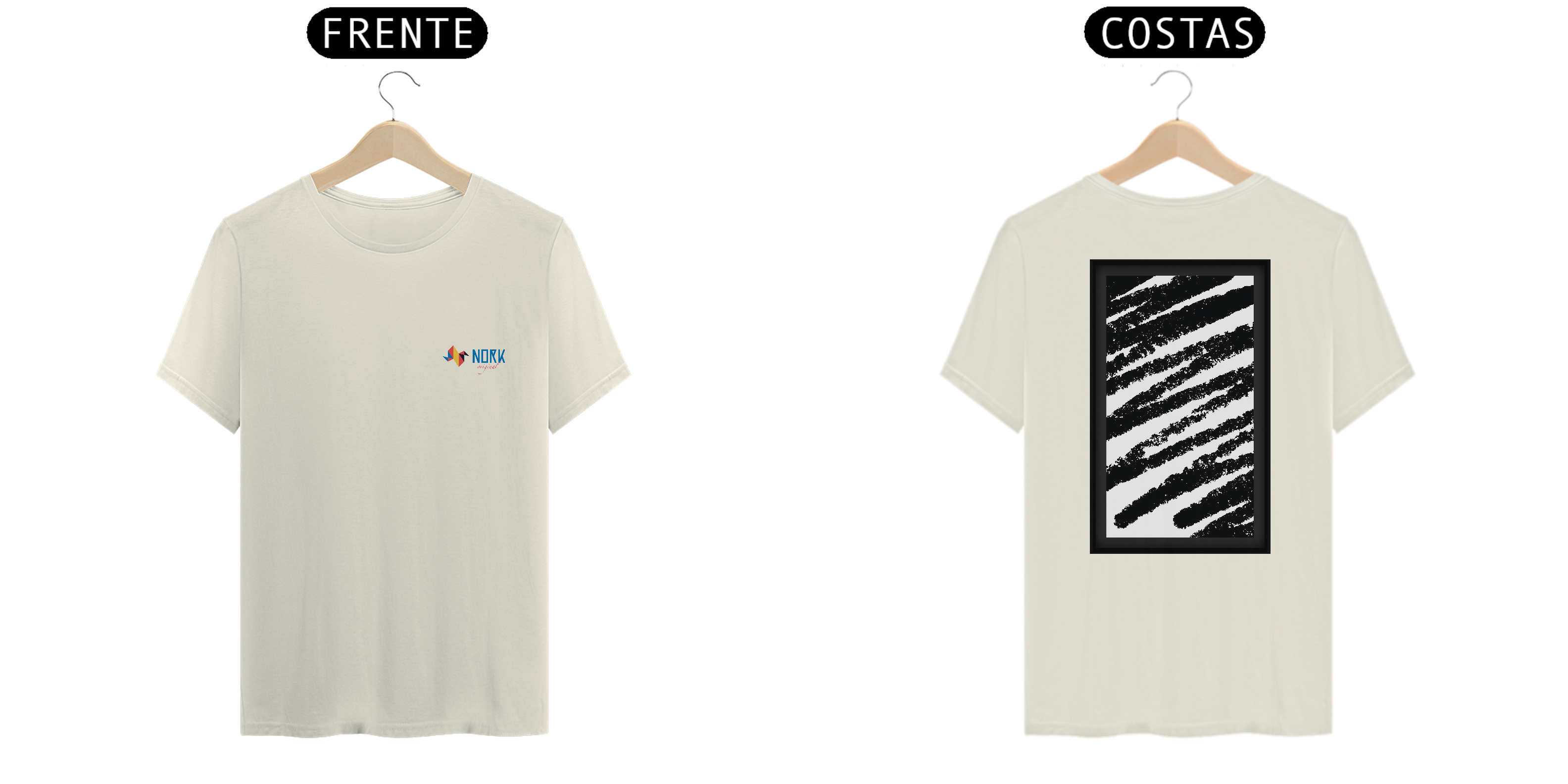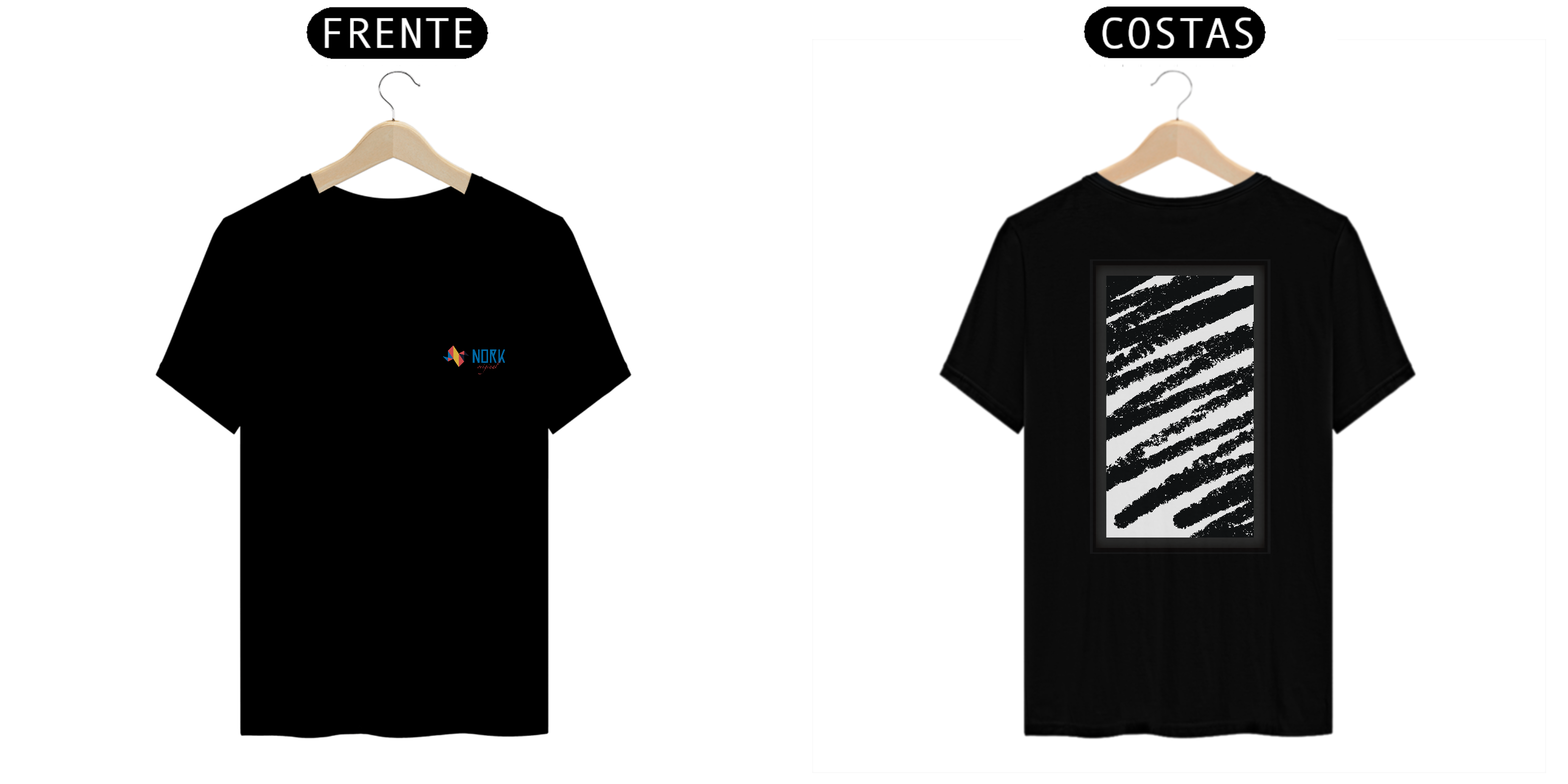 Integrante da Coleção Nork Original Terapia, esta camisa apresenta um design em preto e branco com linhas diagonais amplas e texturizadas, que lembram traços feitos à mão com movimentos firmes e livres. Inspirada no conceito de "terapia do rabiscar", a arte transmite uma sensação de força, ritmo e espontaneidade, refletindo a beleza de criar sem restrições.