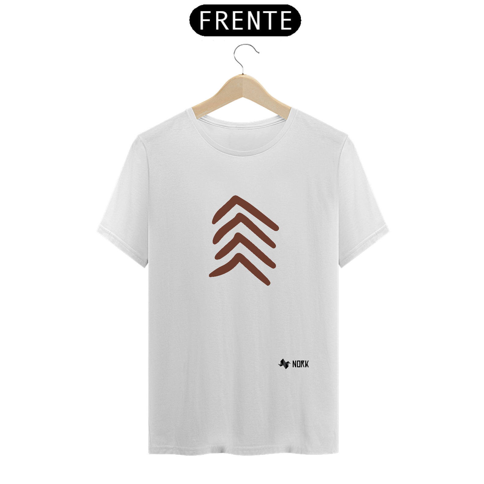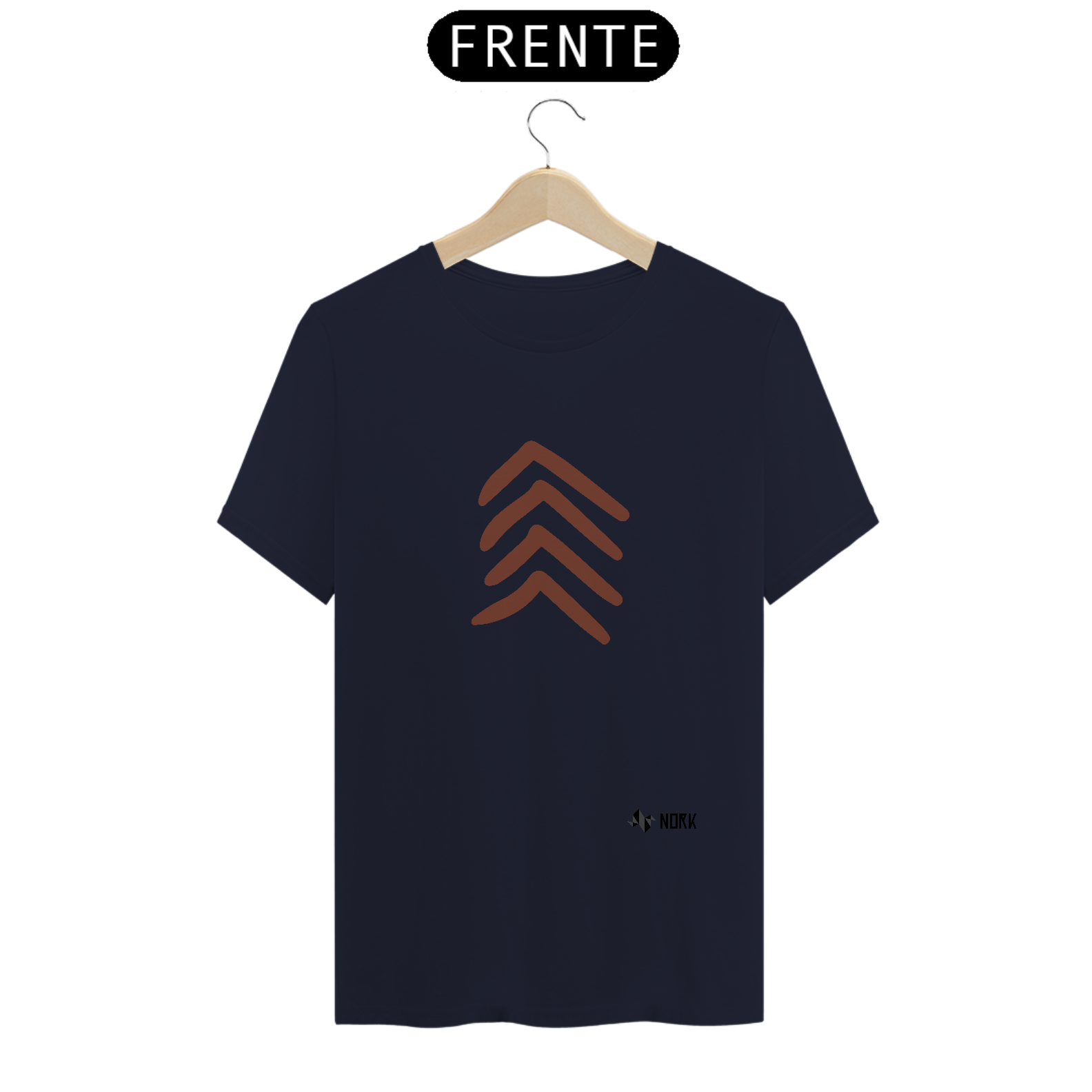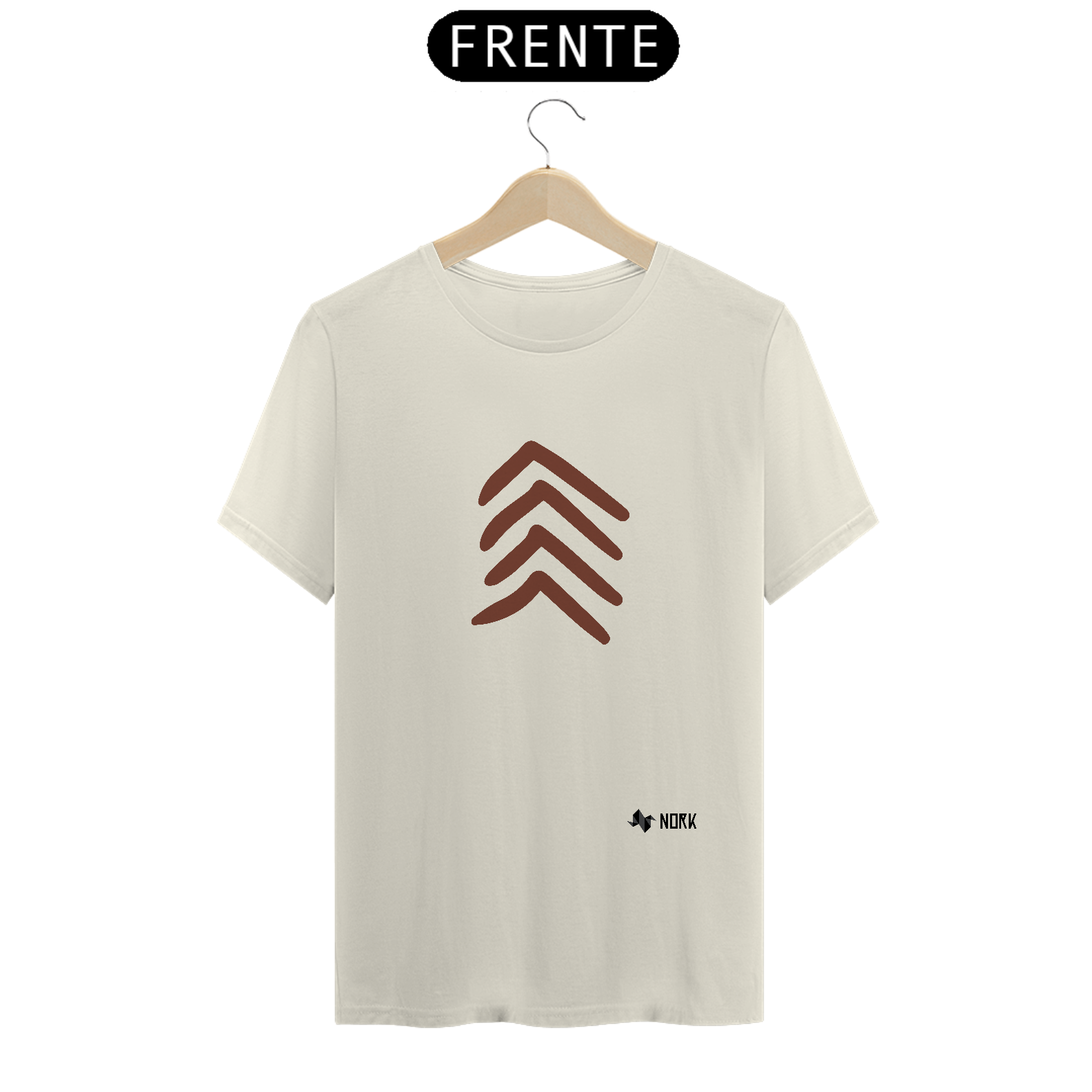 Este design exibe um conjunto de linhas marrons em formato de chevron repetido, apontando para cima. A composição remete a um padrão que evoca elementos naturais, como montanhas ou ondas, simbolizando crescimento, elevação e estabilidade. A cor marrom reforça a conexão com a terra e a natureza.