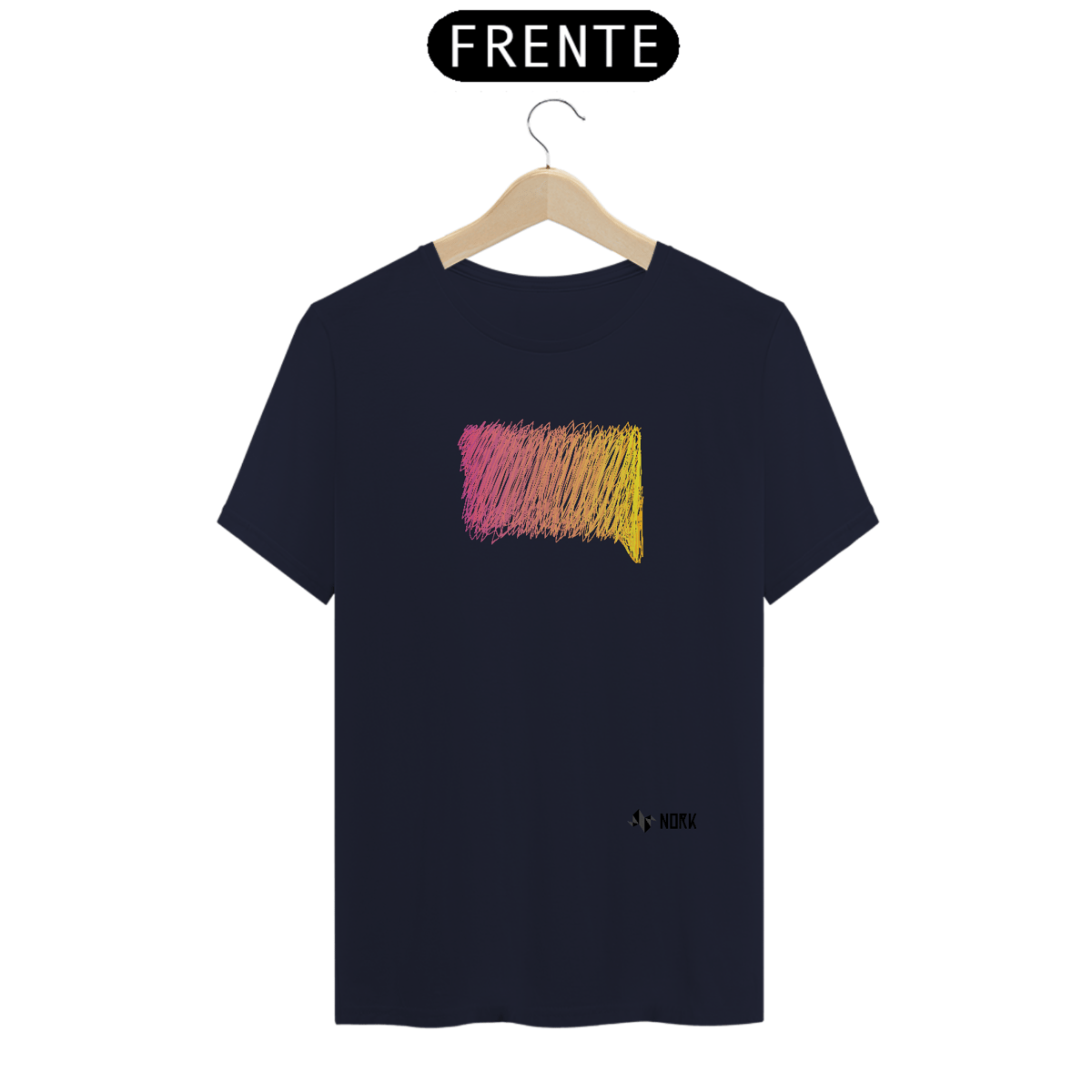 Rabiscos sobrepostos em um formato retangular, exibindo um degradê que transita do rosa ao amarelo. As linhas irregulares criam textura e movimento, enquanto a paleta de cores quentes transmite energia e alegria. O estilo solto e espontâneo reforça a essência criativa da Coleção Nork Rabisco.