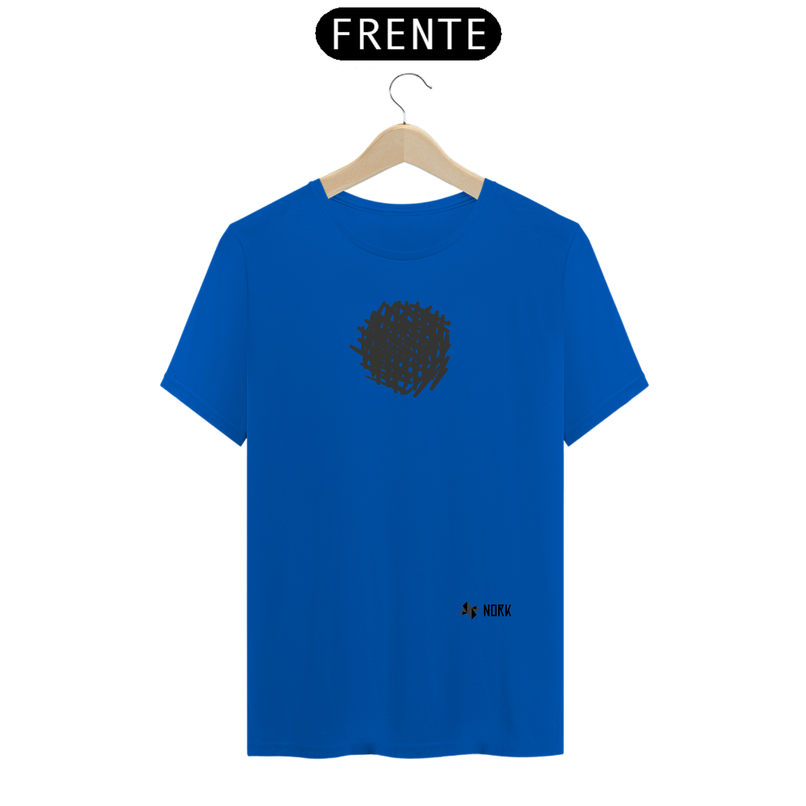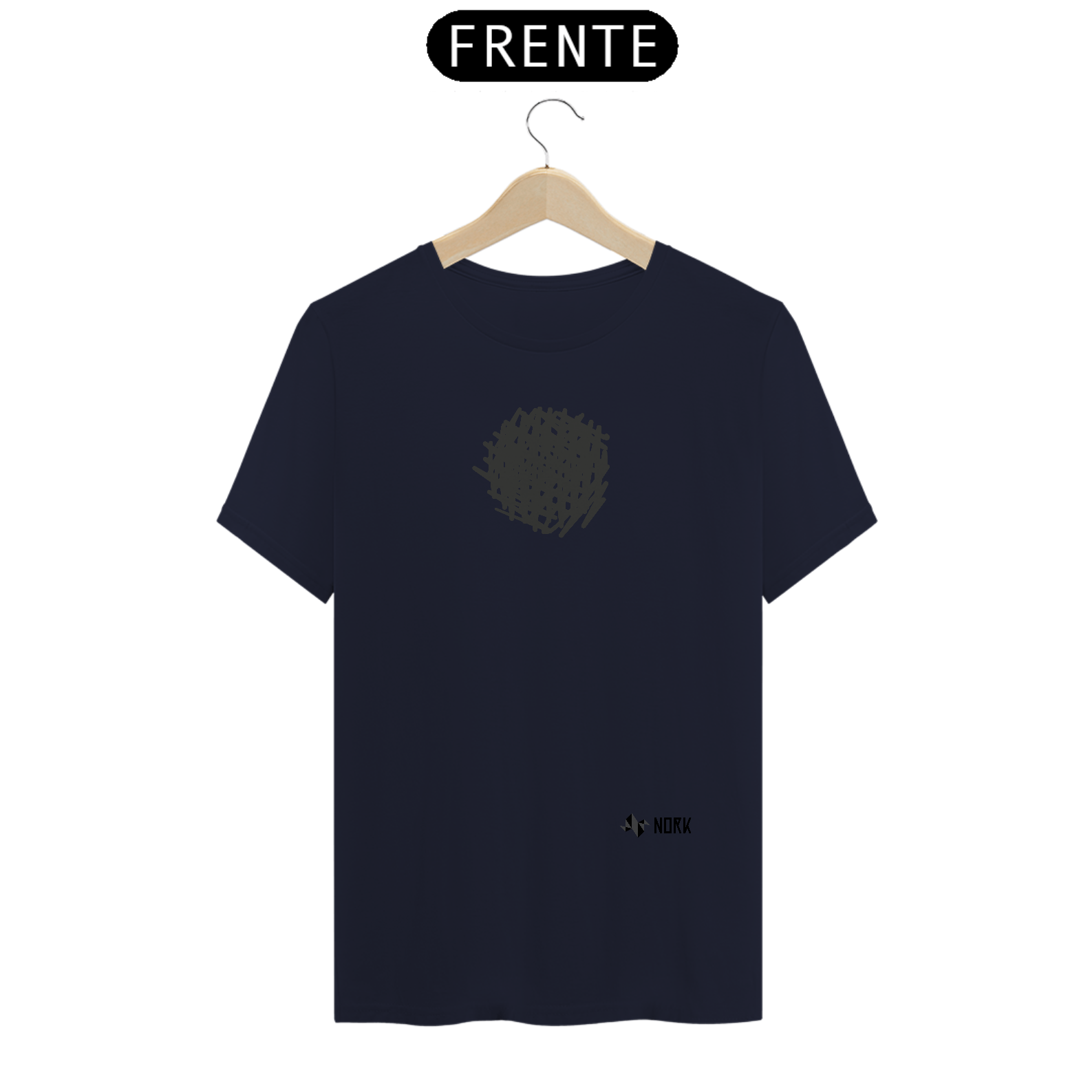 Essa arte traz um padrão denso de linhas pretas sobrepostas que formam uma figura compacta e texturizada. As linhas se cruzam em várias direções, criando uma aparência de um emaranhado ou uma esfera tridimensional. A escolha do preto puro realça o contraste e reforça a ideia de intensidade e energia concentrada, remetendo a um conceito de caos organizado.