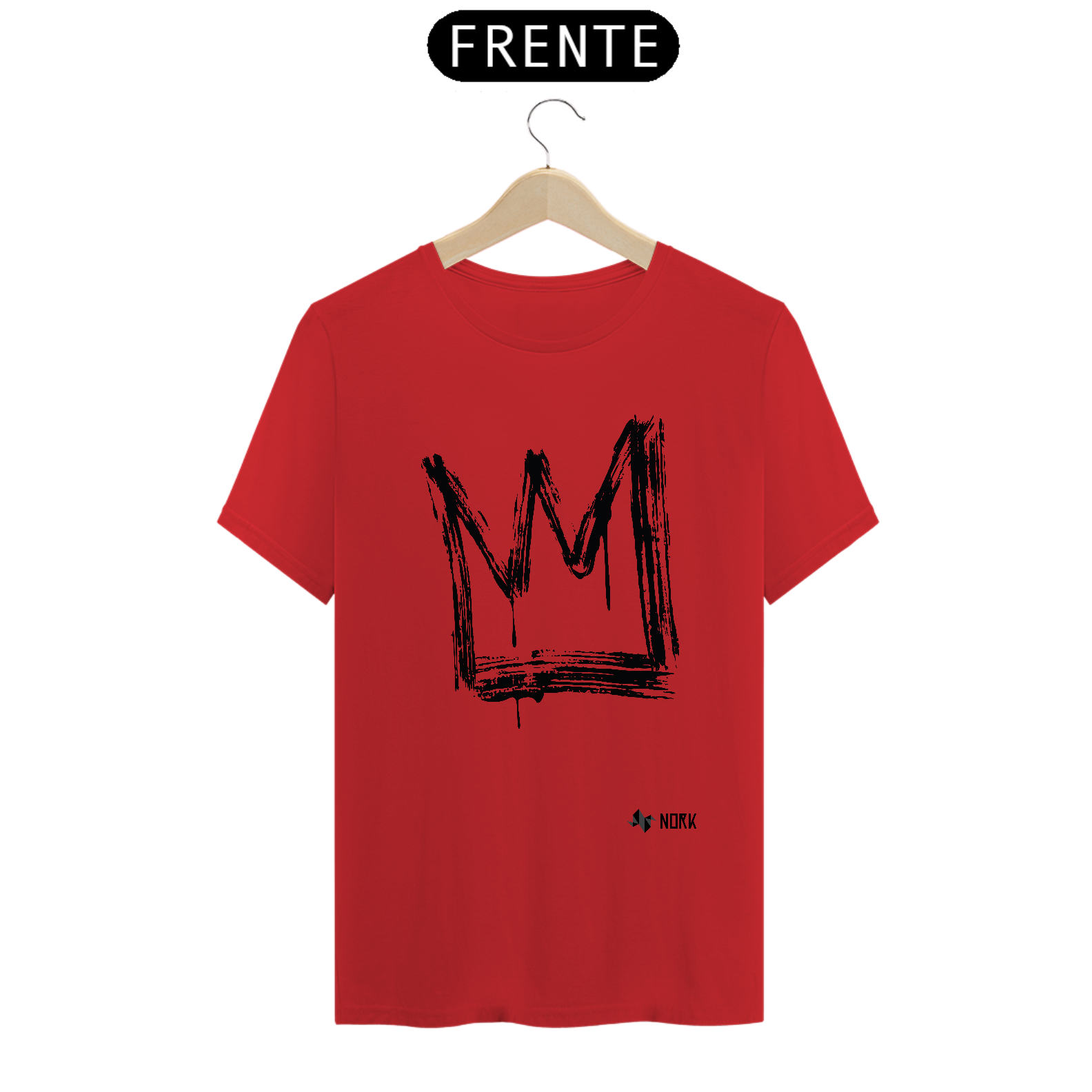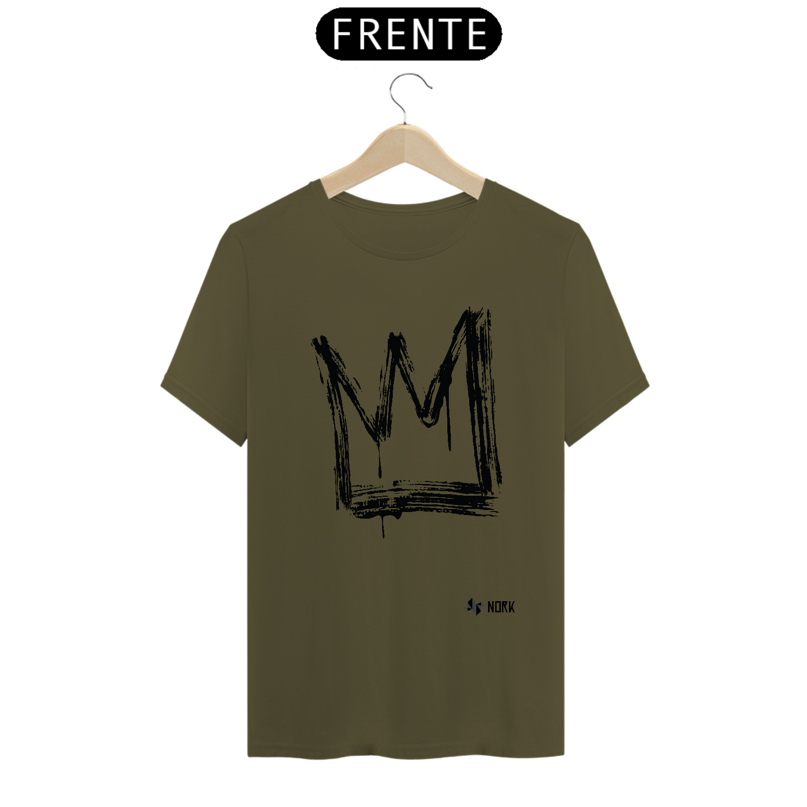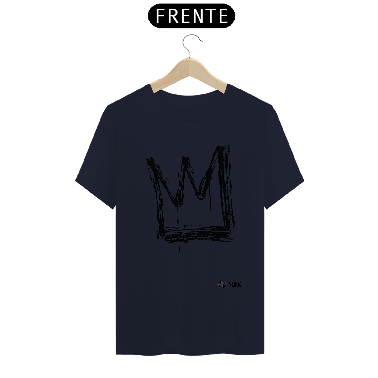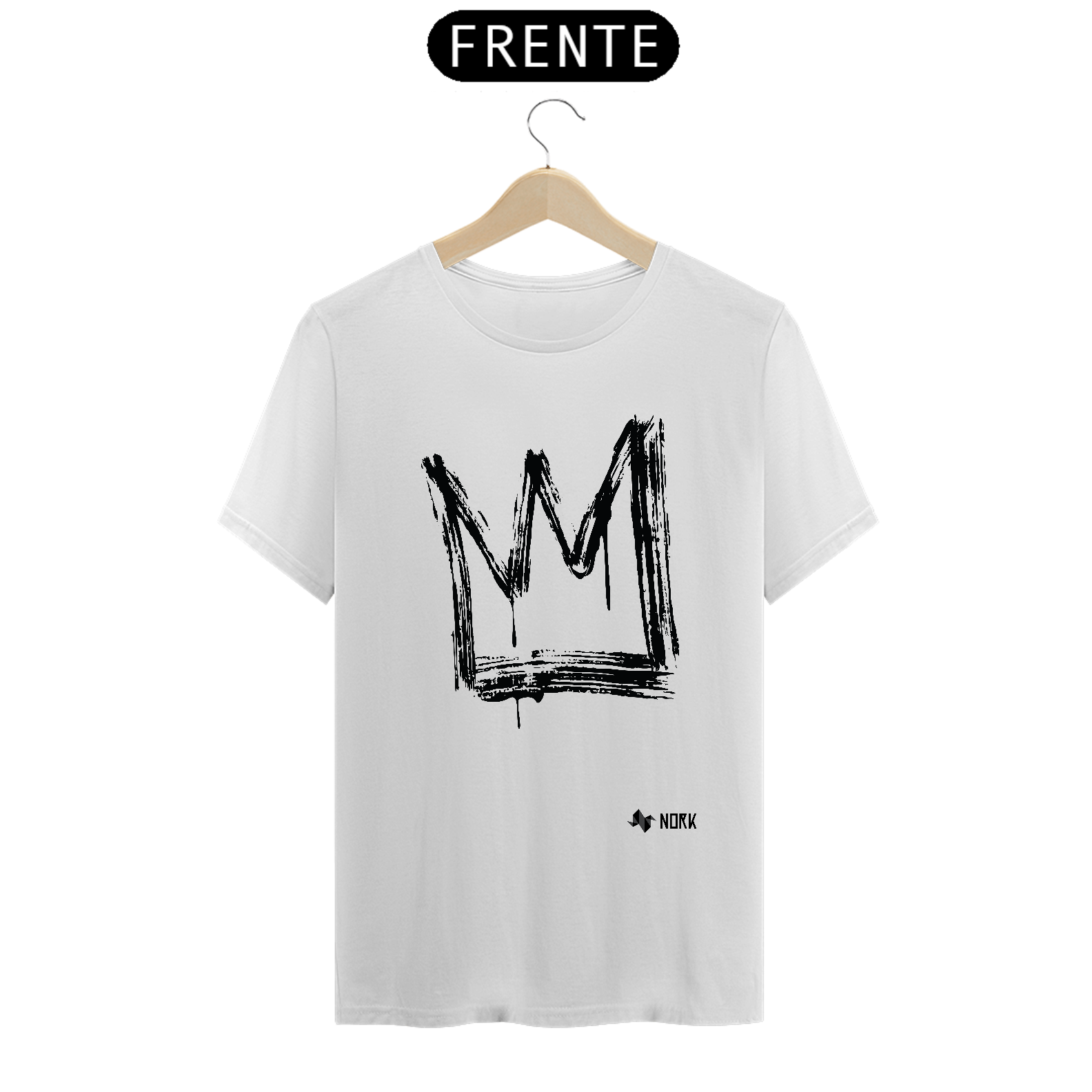 Esta arte apresenta uma coroa estilizada em preto com traços marcantes e rústicos, como se desenhada com pinceladas grossas. Os detalhes escorridos e as bordas irregulares conferem uma estética crua, contemporânea e rebelde, que sugere autoridade e poder com um toque de irreverência.