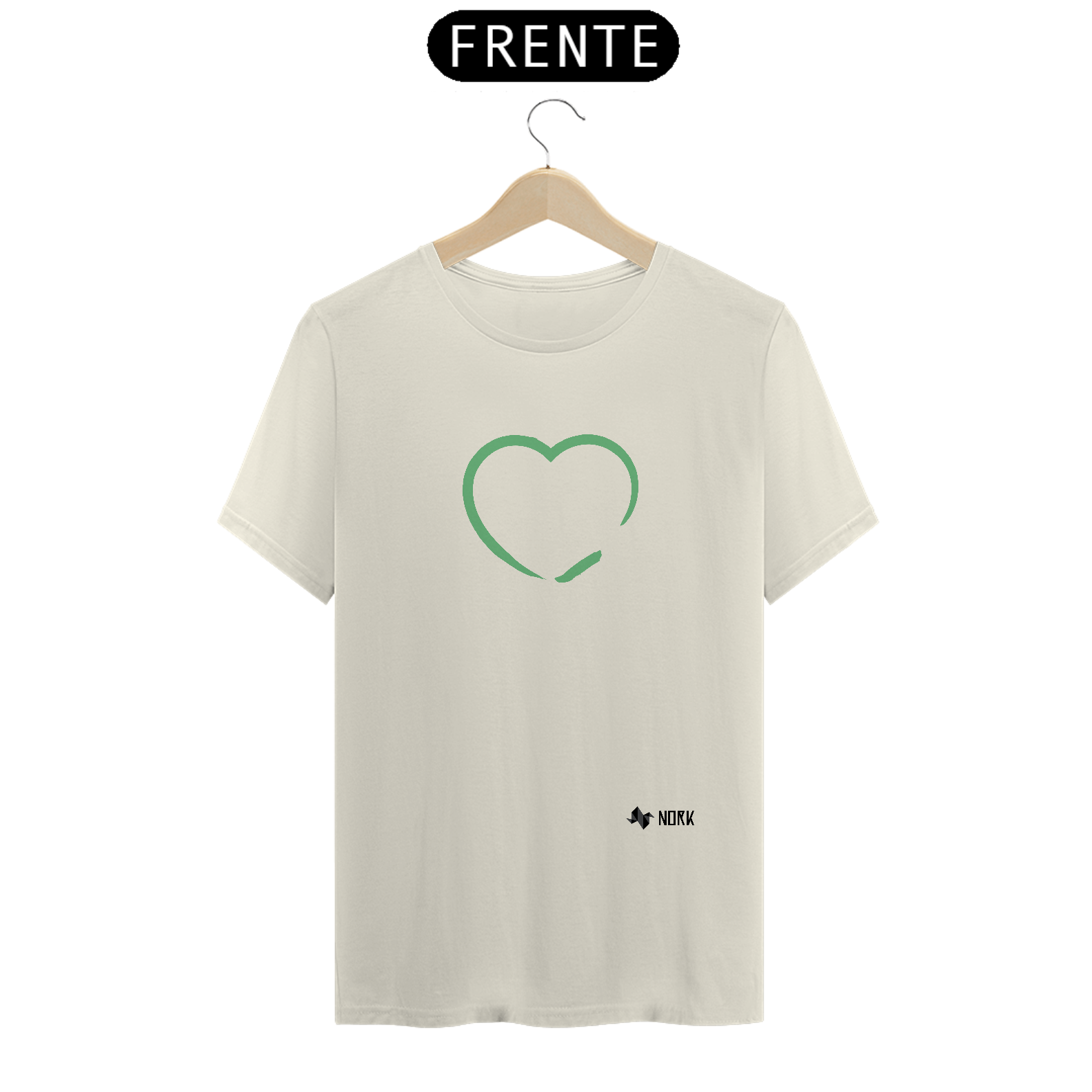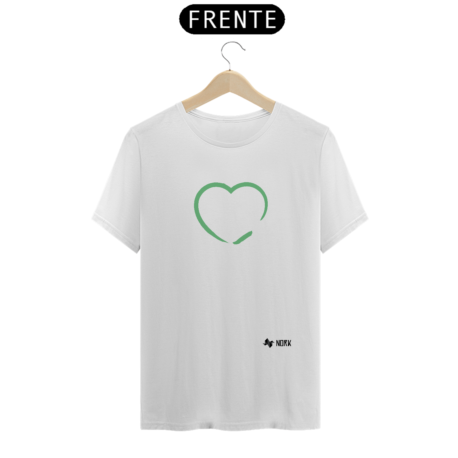 O design apresenta um coração verde estilizado com traços simples e orgânicos, transmitindo delicadeza, harmonia e um toque minimalista. O uso do verde reforça uma conexão com a natureza, equilíbrio e tranquilidade, enquanto a forma incompleta do coração sugere dinamismo e criatividade.