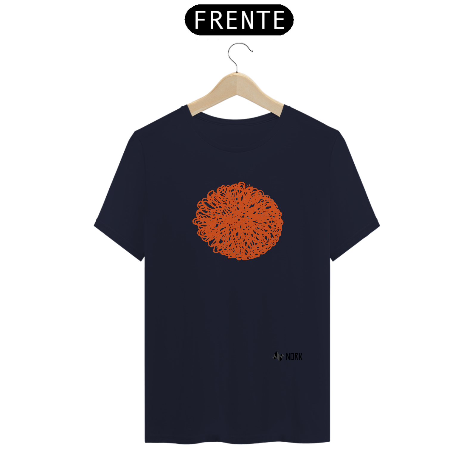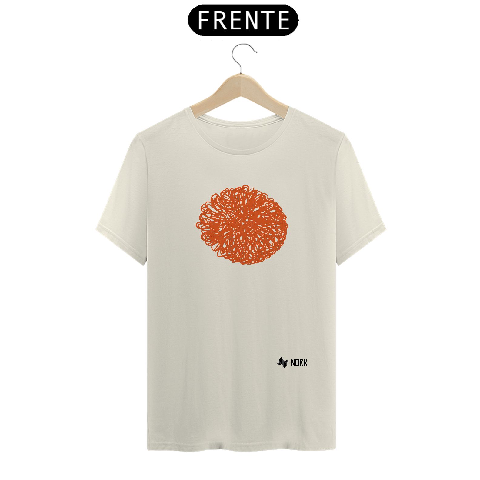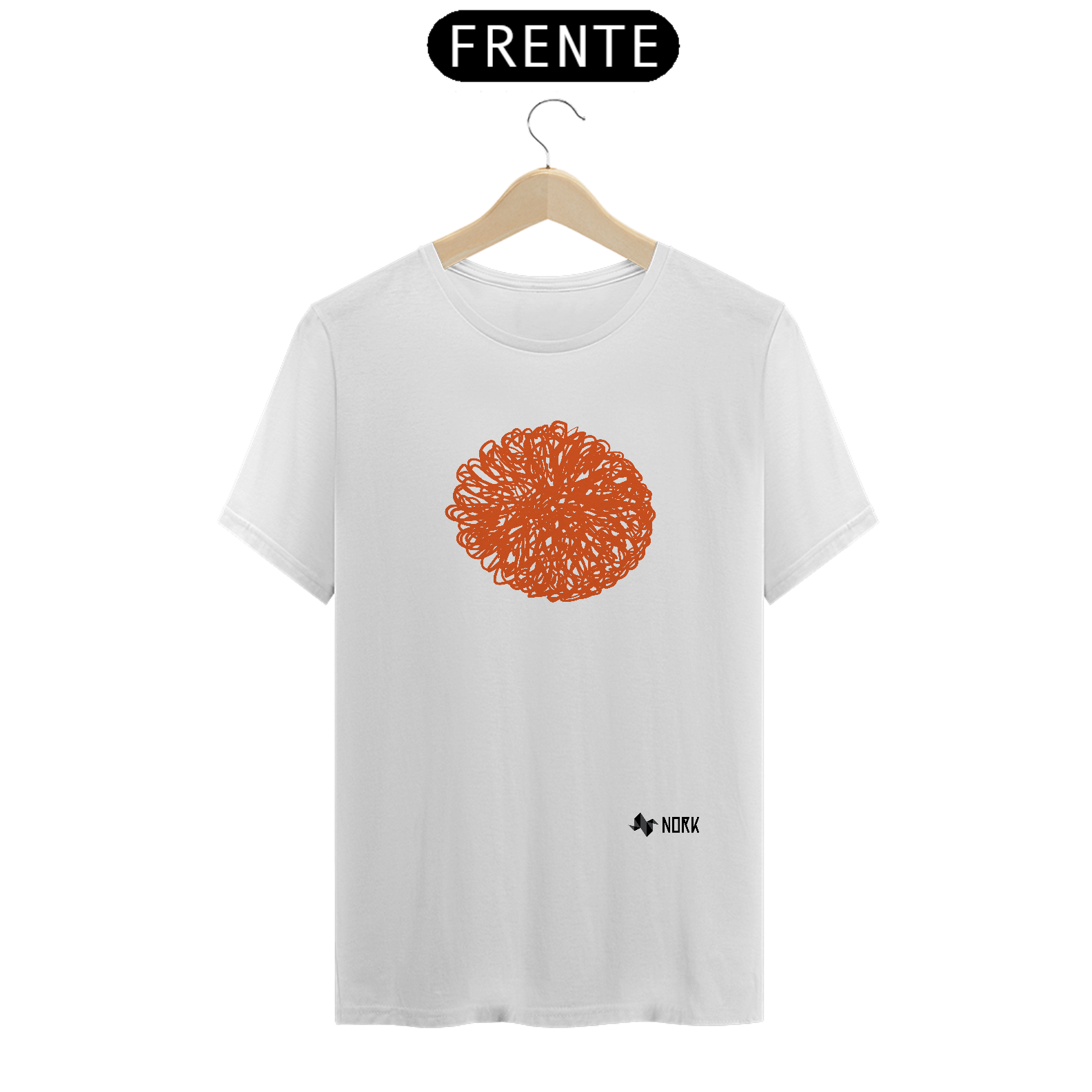 Um emaranhado de rabiscos circulares em laranja vibrante, formando um núcleo cheio de movimento e sobreposições que lembram uma flor abstrata ou um pompom. A cor intensa transmite energia e ousadia, enquanto o estilo solto e orgânico reflete a espontaneidade característica da Coleção Nork Rabisco.