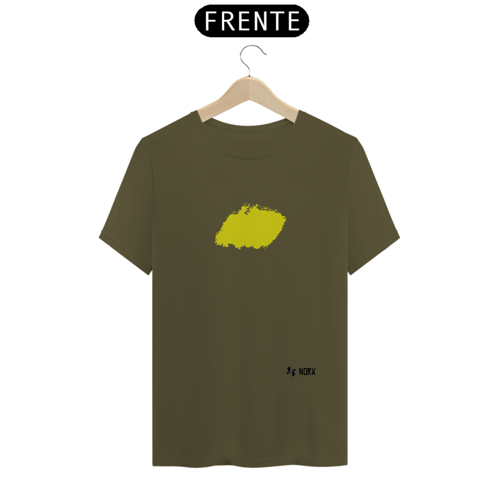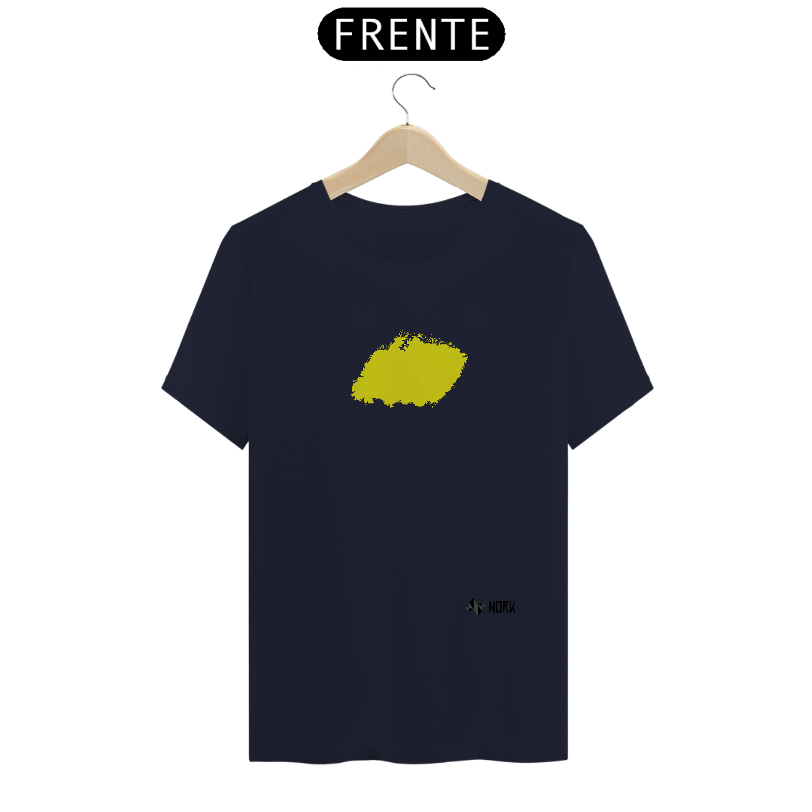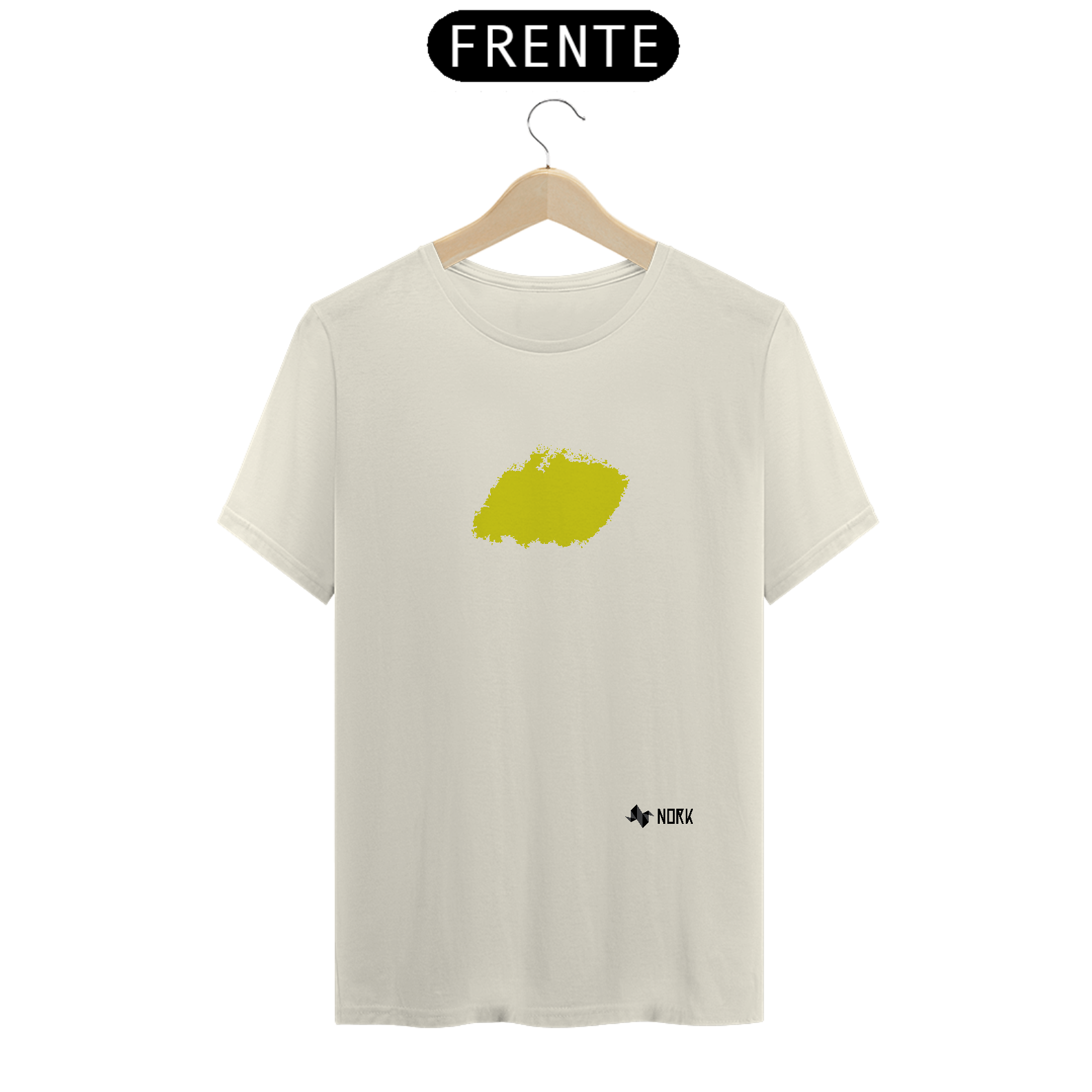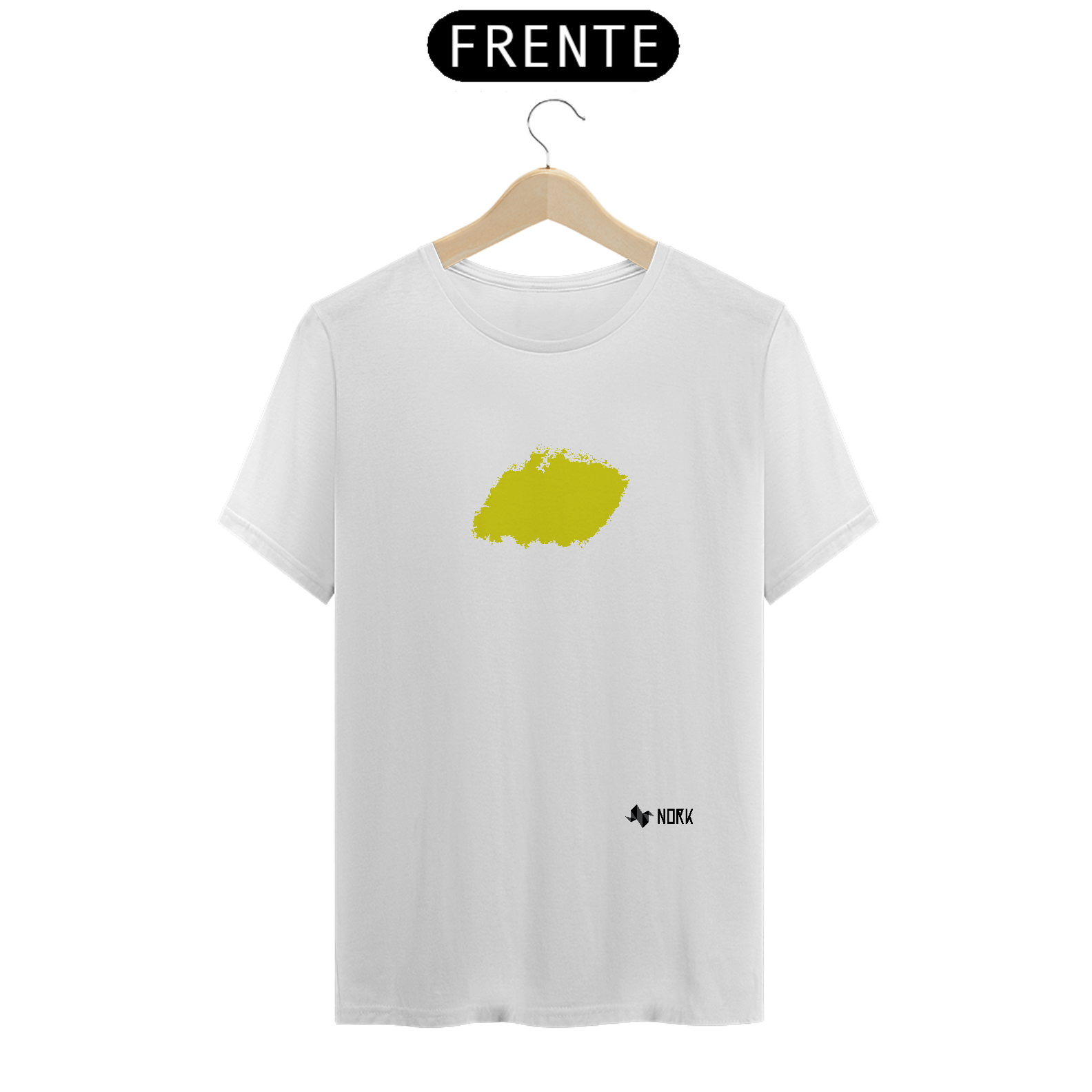 Uma mancha em amarelo vibrante com contornos irregulares, como se fosse um borrão de tinta ou giz pastel, transmitindo uma energia leve e descontraída. A cor amarela simboliza alegria e otimismo, enquanto as bordas irregulares reforçam a estética solta e espontânea da Coleção Nork Rabisco.