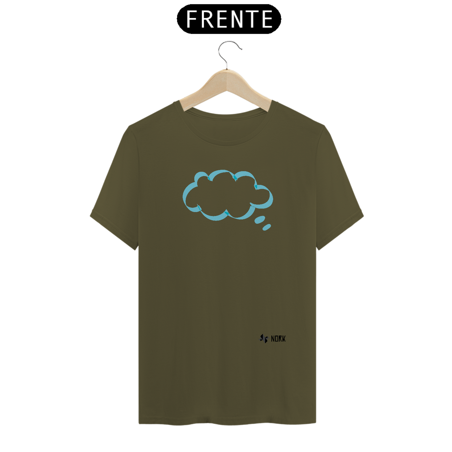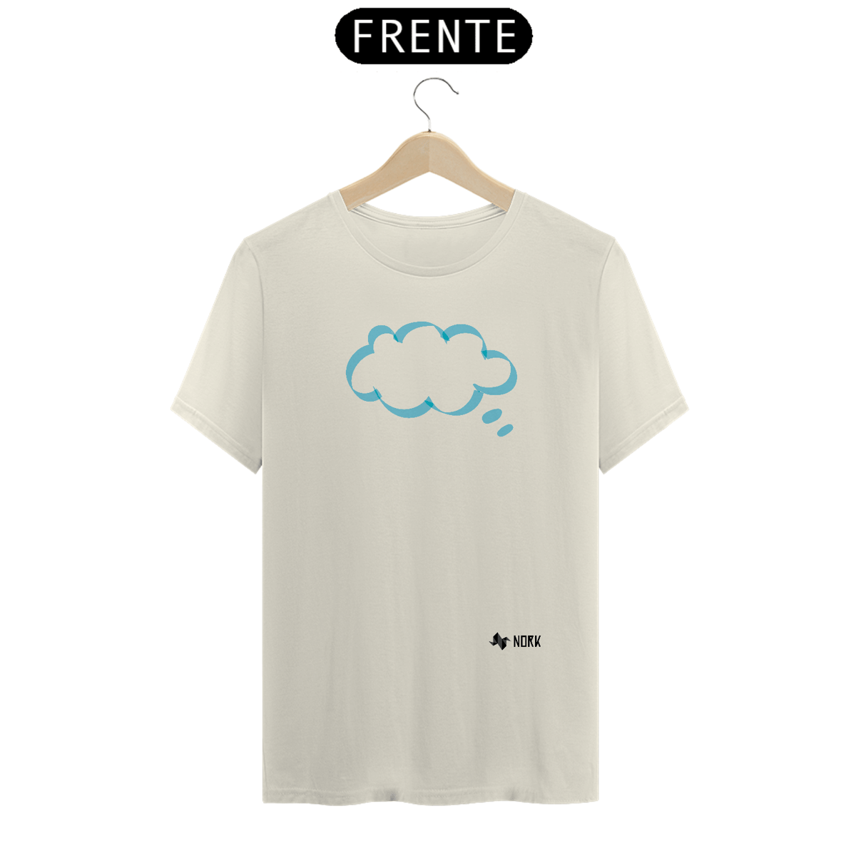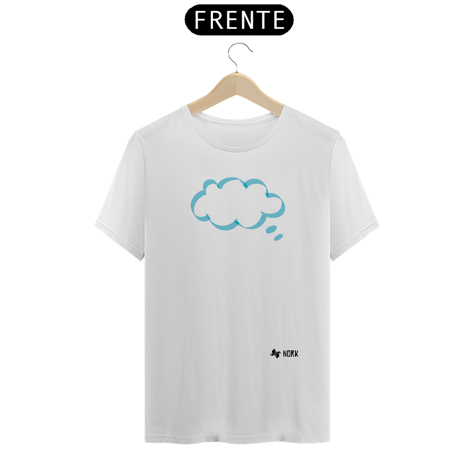 A estampa apresenta uma nuvem de pensamento em azul claro com bordas translúcidas, transmitindo uma sensação de leveza e criatividade. O design minimalista remete à ideia de sonhos, reflexões e possibilidades, combinando delicadeza e descontração. A tonalidade azul reforça a serenidade e a clareza mental, tornando a peça ideal para quem busca transmitir originalidade e uma mente aberta.