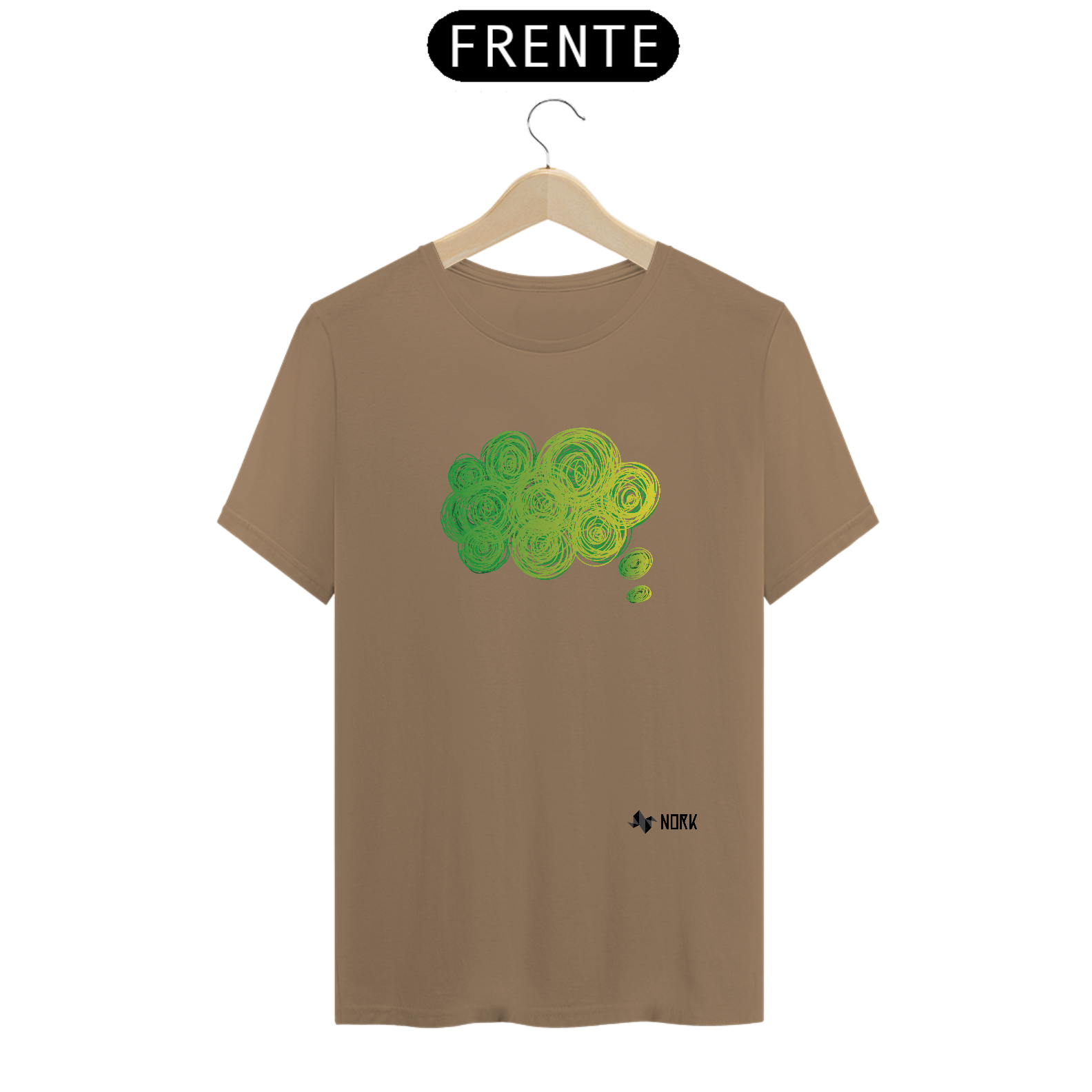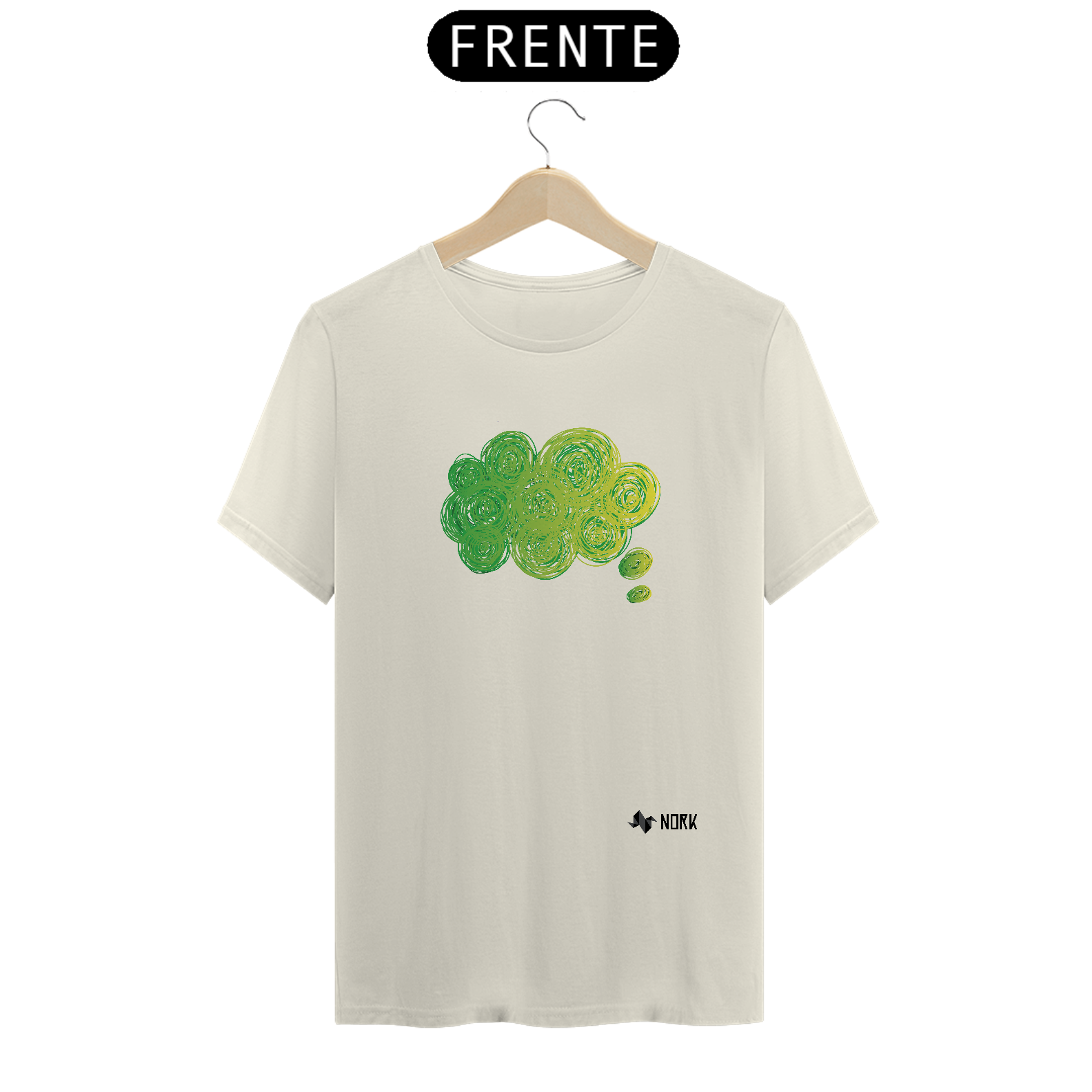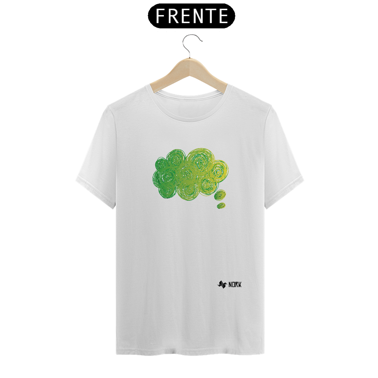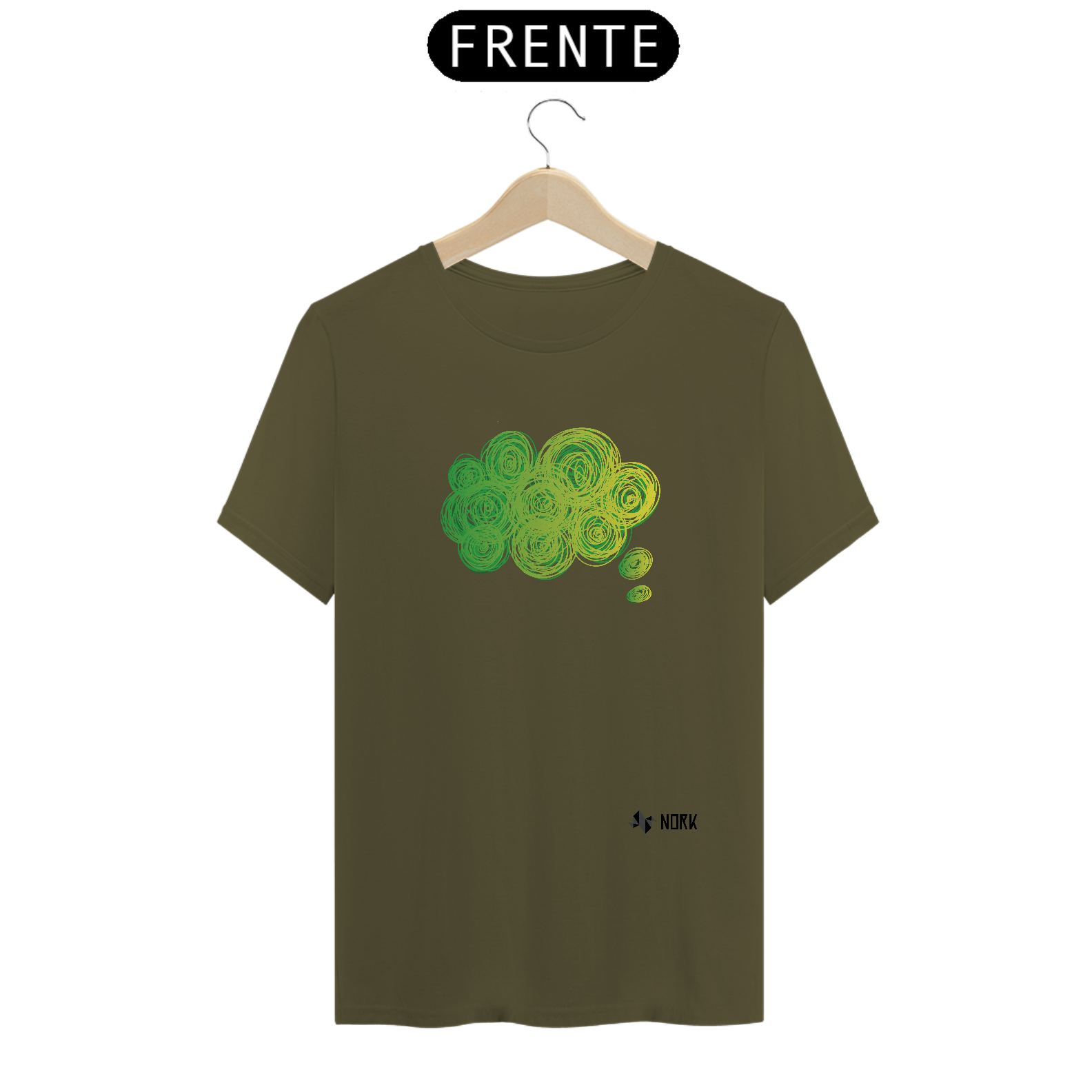 Uma composição de círculos formados por rabiscos sobrepostos em tons de verde que evoluem para o amarelo, criando a sensação de uma nuvem orgânica. As espirais variam de tamanho e intensidade, transmitindo fluidez e movimento, enquanto a paleta vibrante remete à renovação, em sintonia com o espírito livre e criativo da Coleção Nork Rabisco.