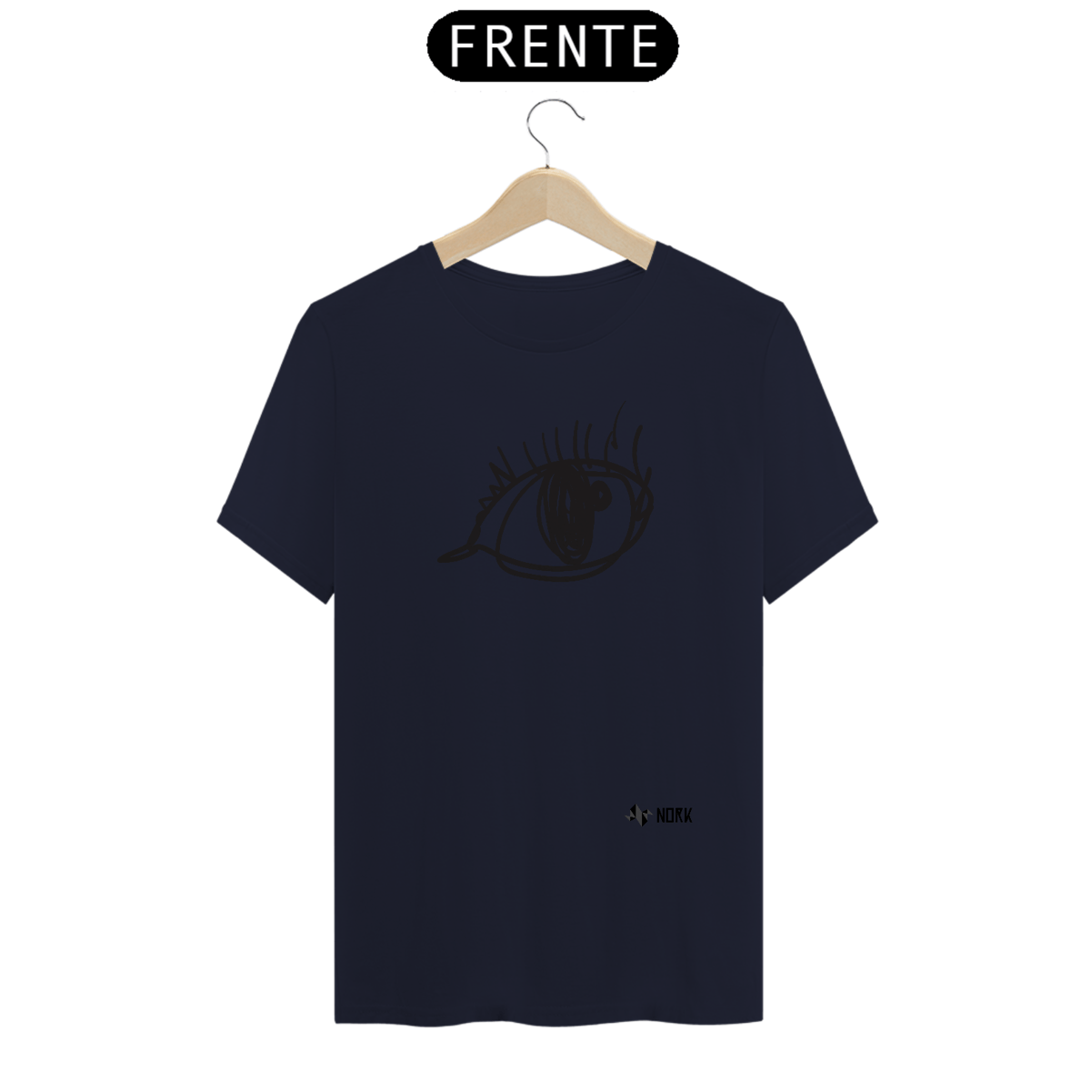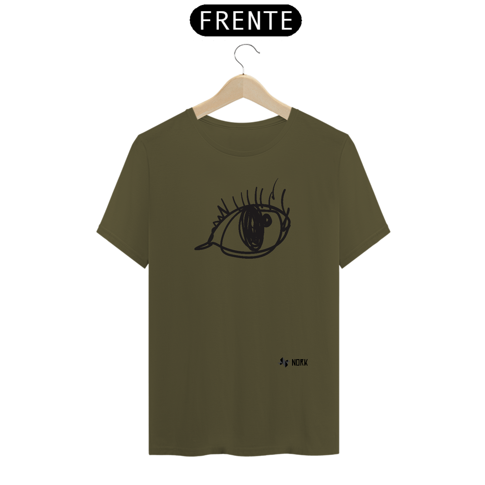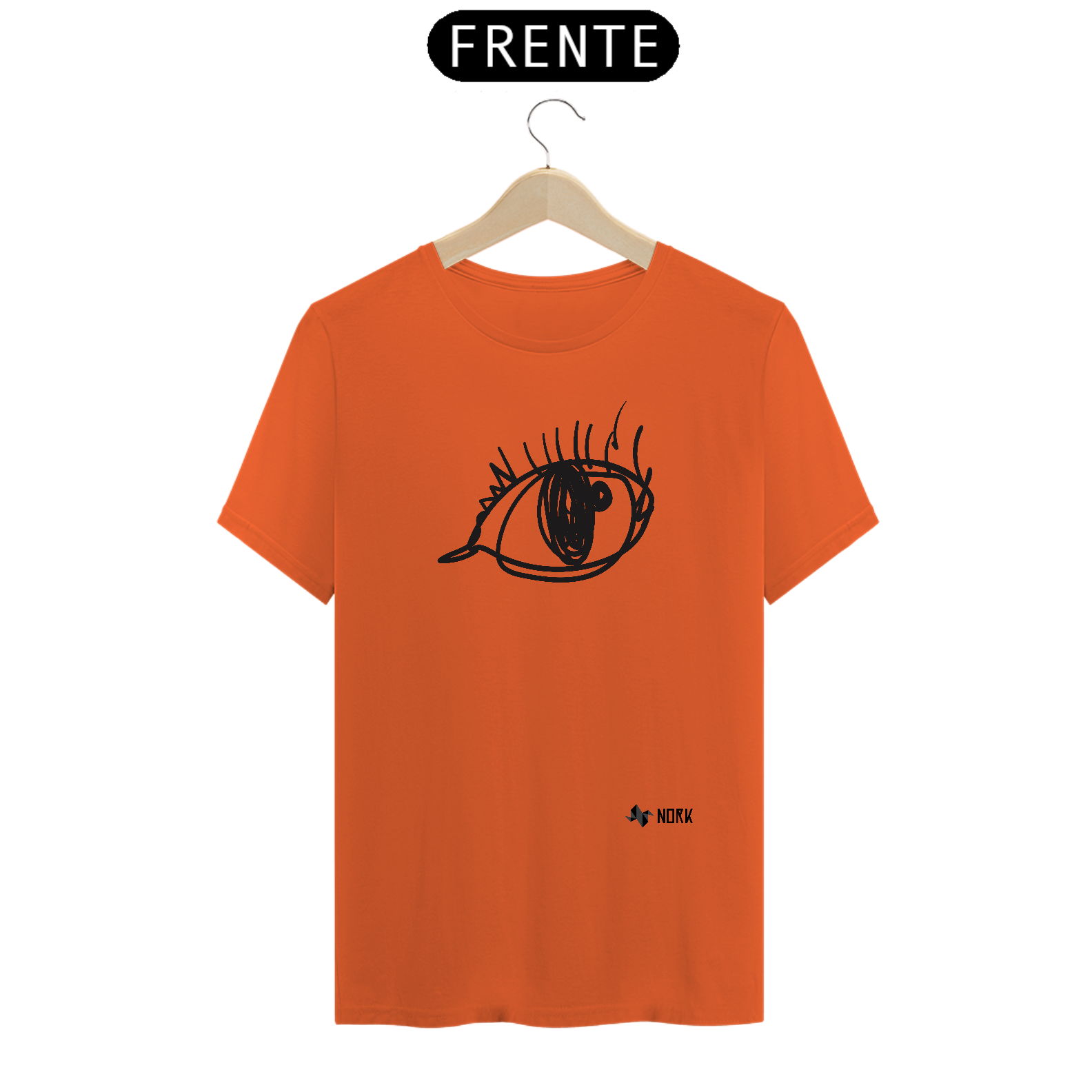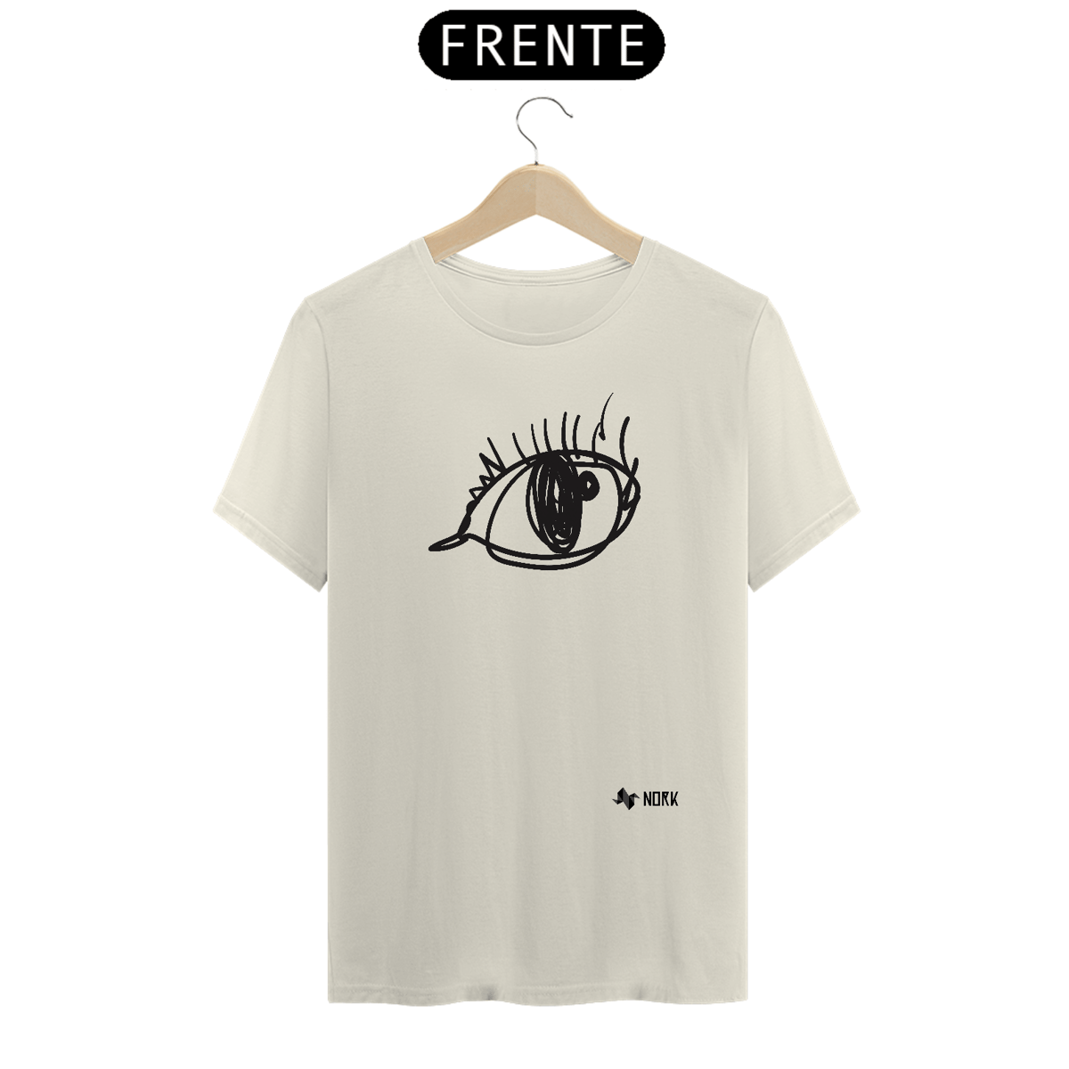 Um desenho estilizado de um olho, formado por traços pretos soltos e dinâmicos. O contorno do olho apresenta cílios irregulares, enquanto a íris é preenchida com rabiscos sobrepostos, criando uma sensação de profundidade e expressão. A estética despojada e artística reflete o espírito espontâneo e criativo da Coleção Nork Rabisco, transmitindo um olhar único e intrigante.