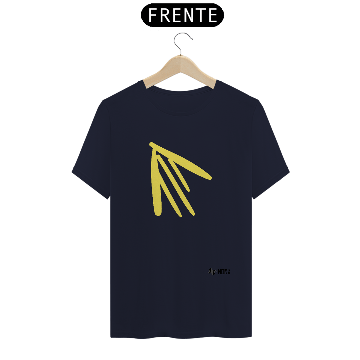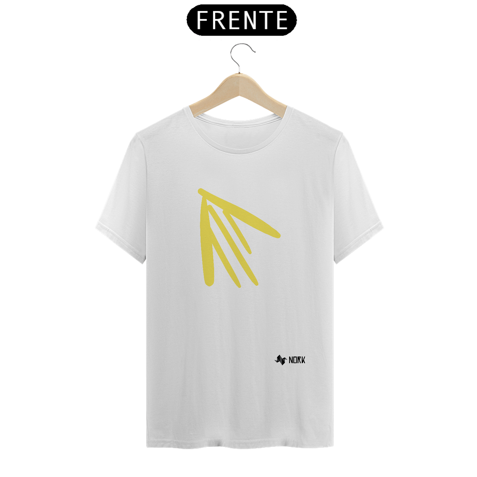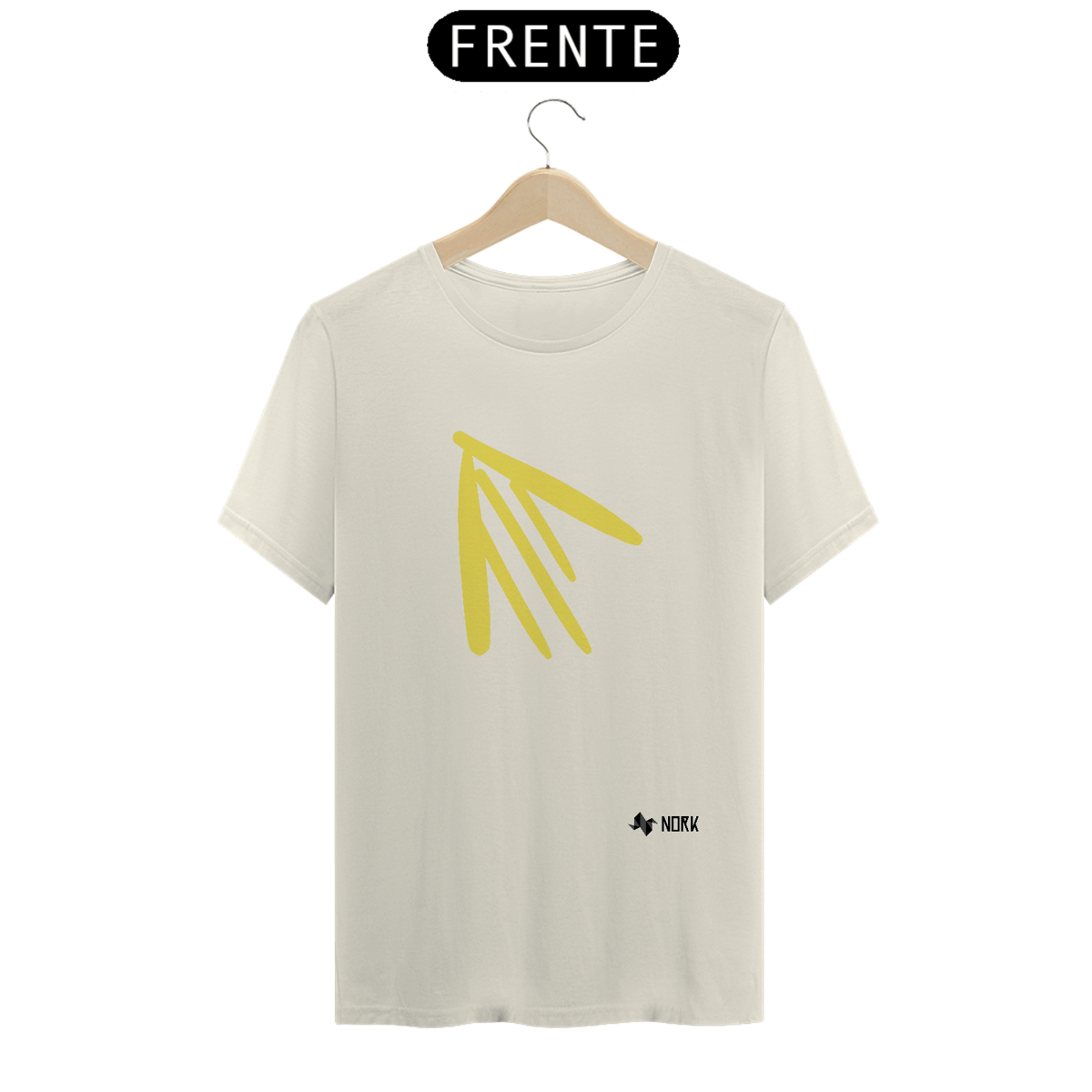 Traços fluidos em amarelo vibrante que se abrem em leques ascendentes, evocando a imagem de raios de luz ou um feixe de energia em expansão. A cor amarela transmite vitalidade, otimismo e positividade, em sintonia com a espontaneidade criativa da Coleção Nork Rabisco.