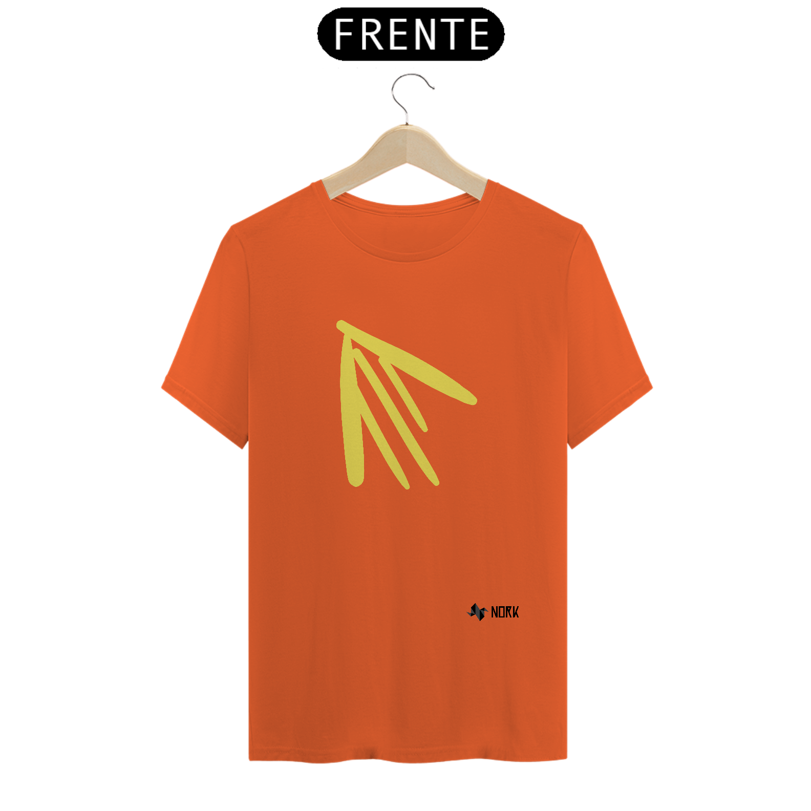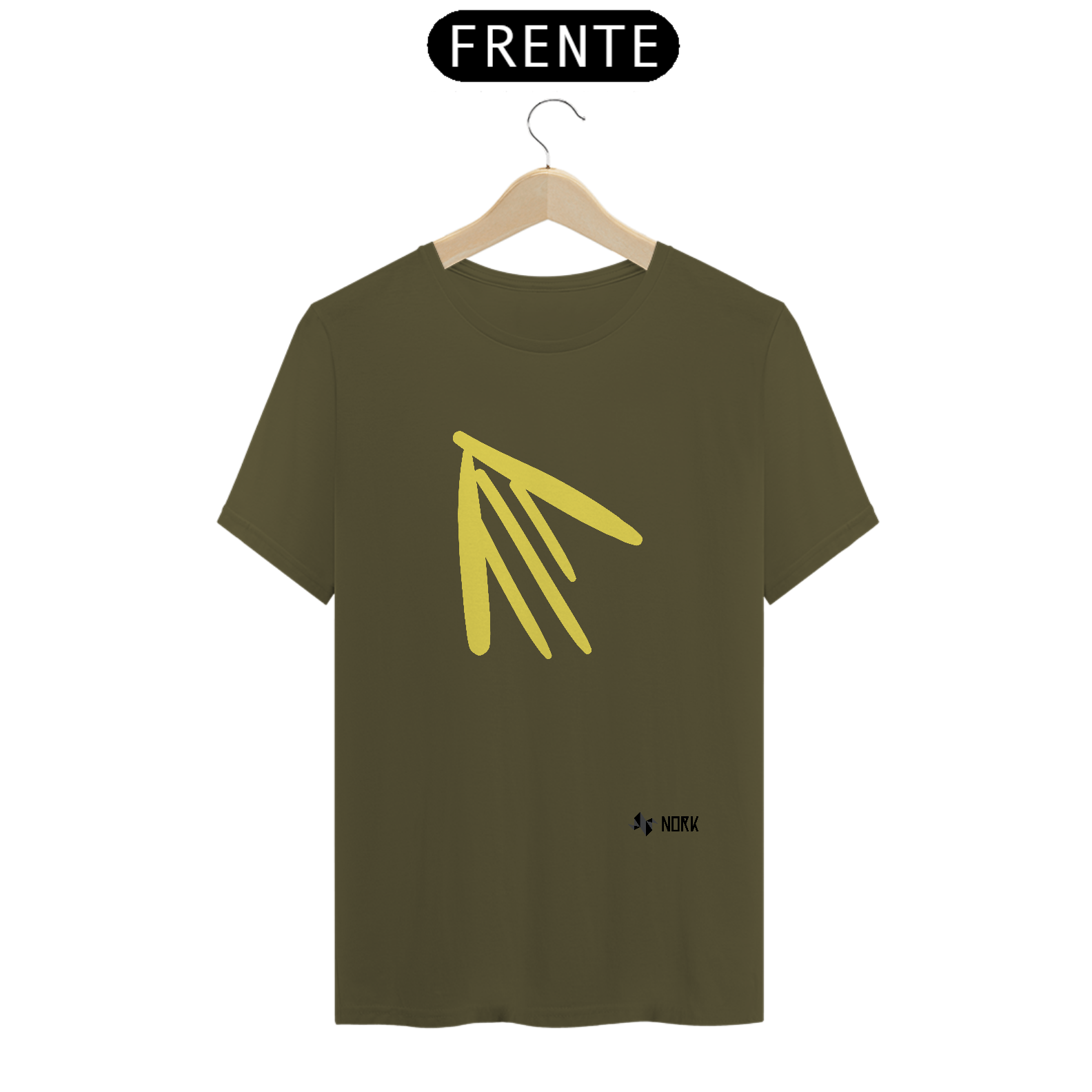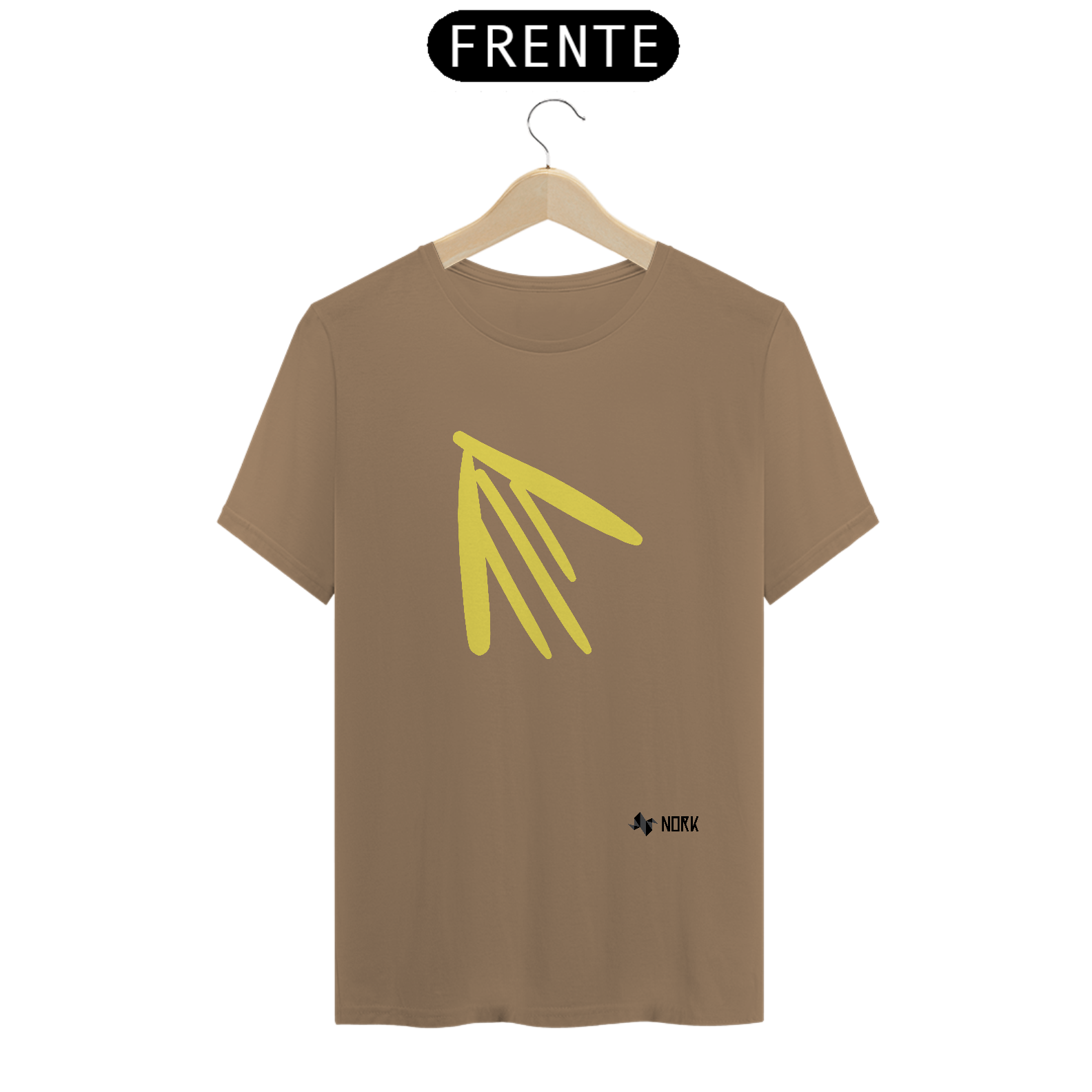Traços fluidos em amarelo vibrante que se abrem em leques ascendentes, evocando a imagem de raios de luz ou um feixe de energia em expansão. A cor amarela transmite vitalidade, otimismo e positividade, em sintonia com a espontaneidade criativa da Coleção Nork Rabisco.