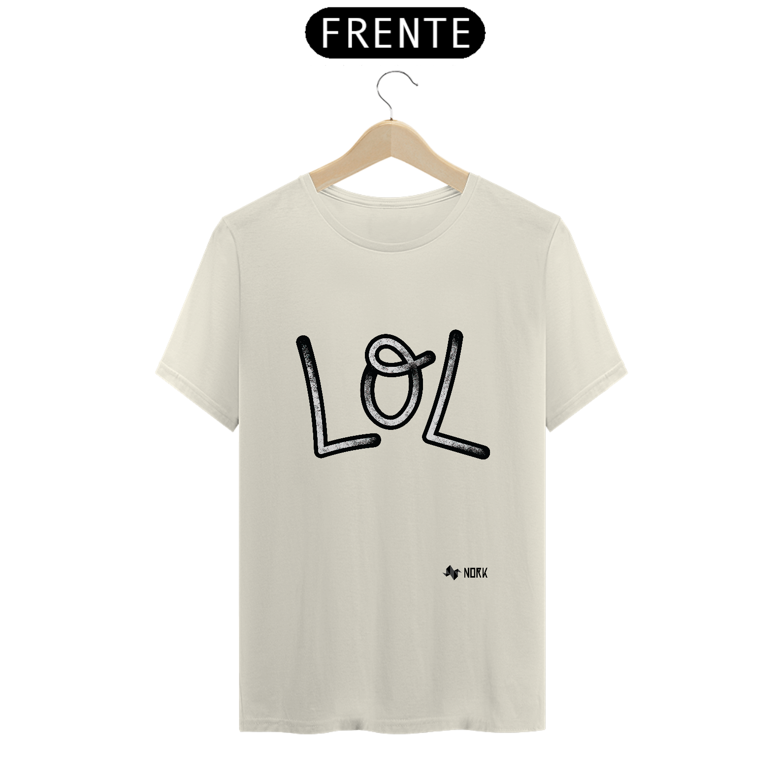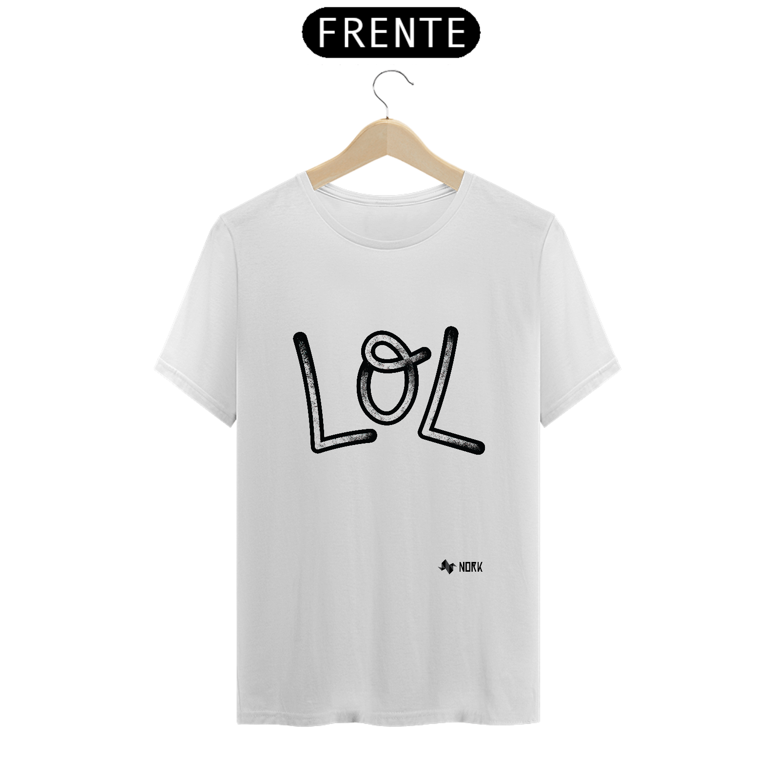 A arte apresenta a palavra "LOL", amplamente reconhecida como uma expressão de risadas e humor no universo digital. O design conta com traços ousados e arredondados, preenchidos com uma textura sutil que remete a um efeito granulado, conferindo profundidade e autenticidade ao visual. As bordas grossas em preto destacam as letras, garantindo um contraste marcante e uma presença visual impactante. Essa composição combina modernidade e diversão, capturando a essência descontraída do mundo das redes sociais e da comunicação online