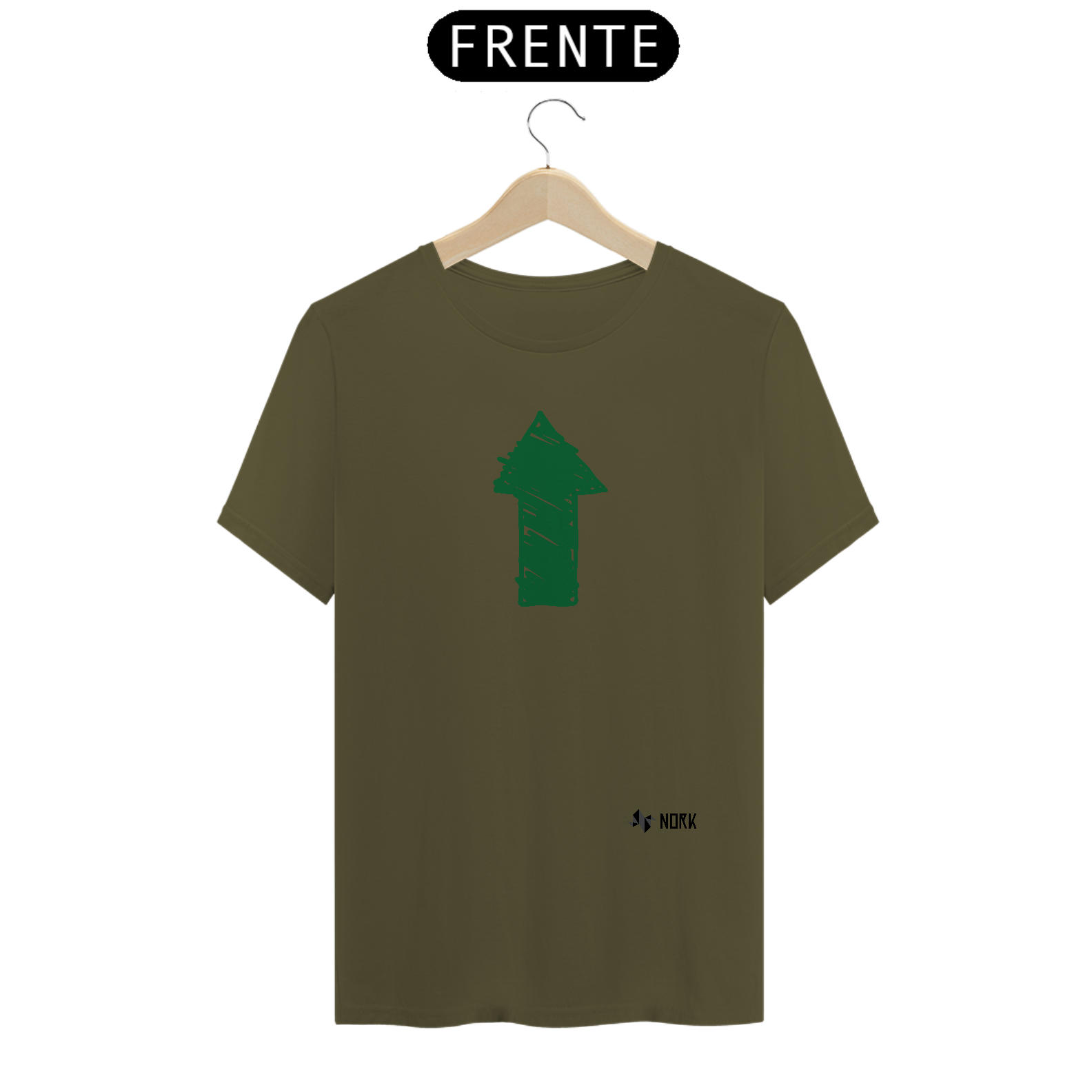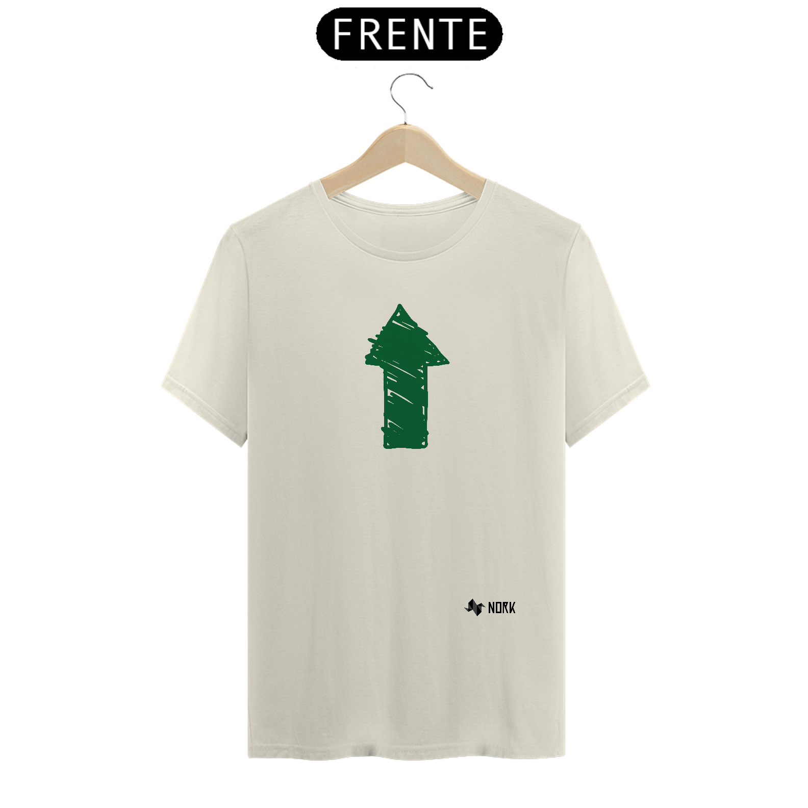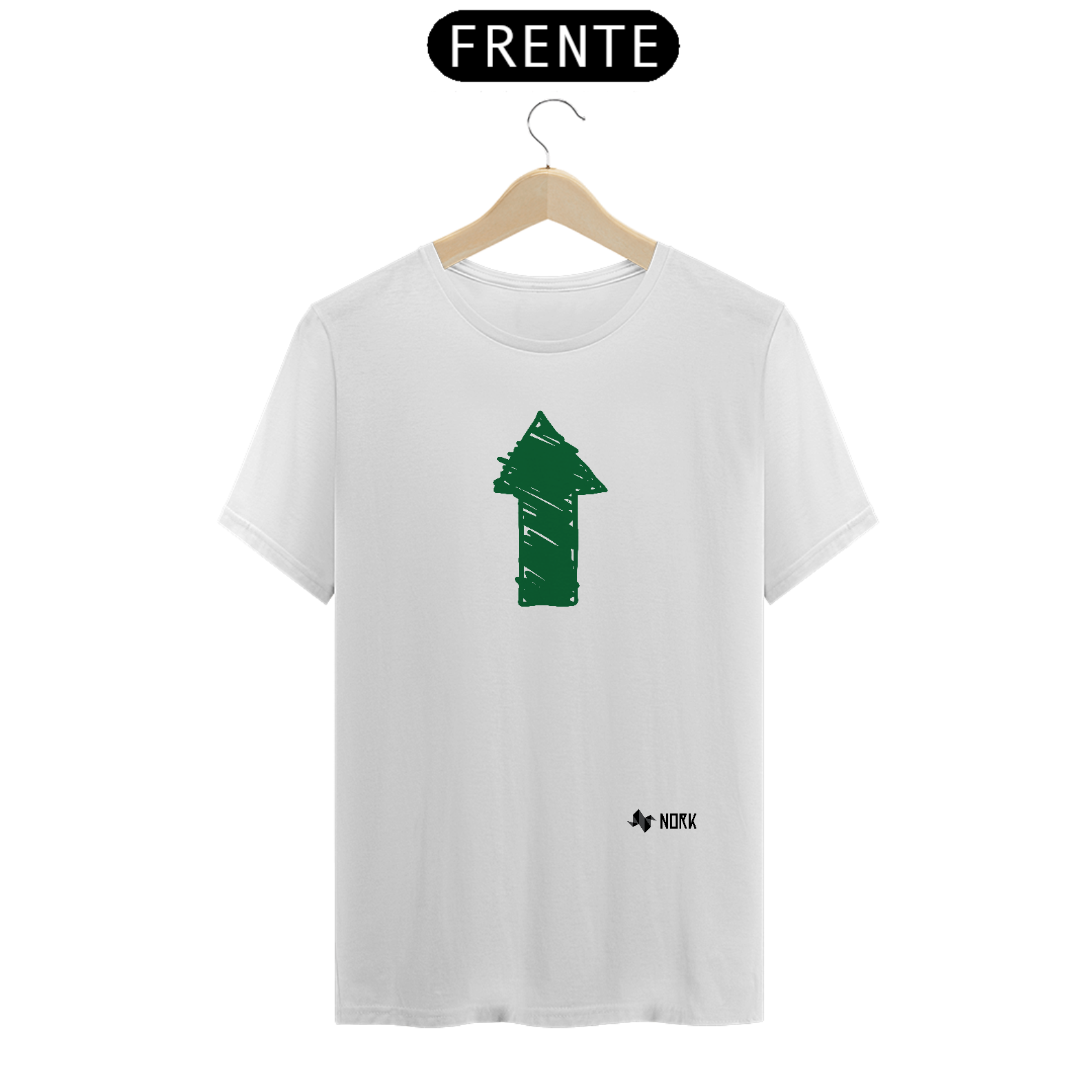 A arte exibe uma seta verde preenchida com traços manuais e robustos, simbolizando crescimento, sustentabilidade e movimento ascendente. O tom verde reforça uma conexão com a natureza e energia positiva, enquanto o design descontraído sugere uma abordagem simples e natural para a progressão.