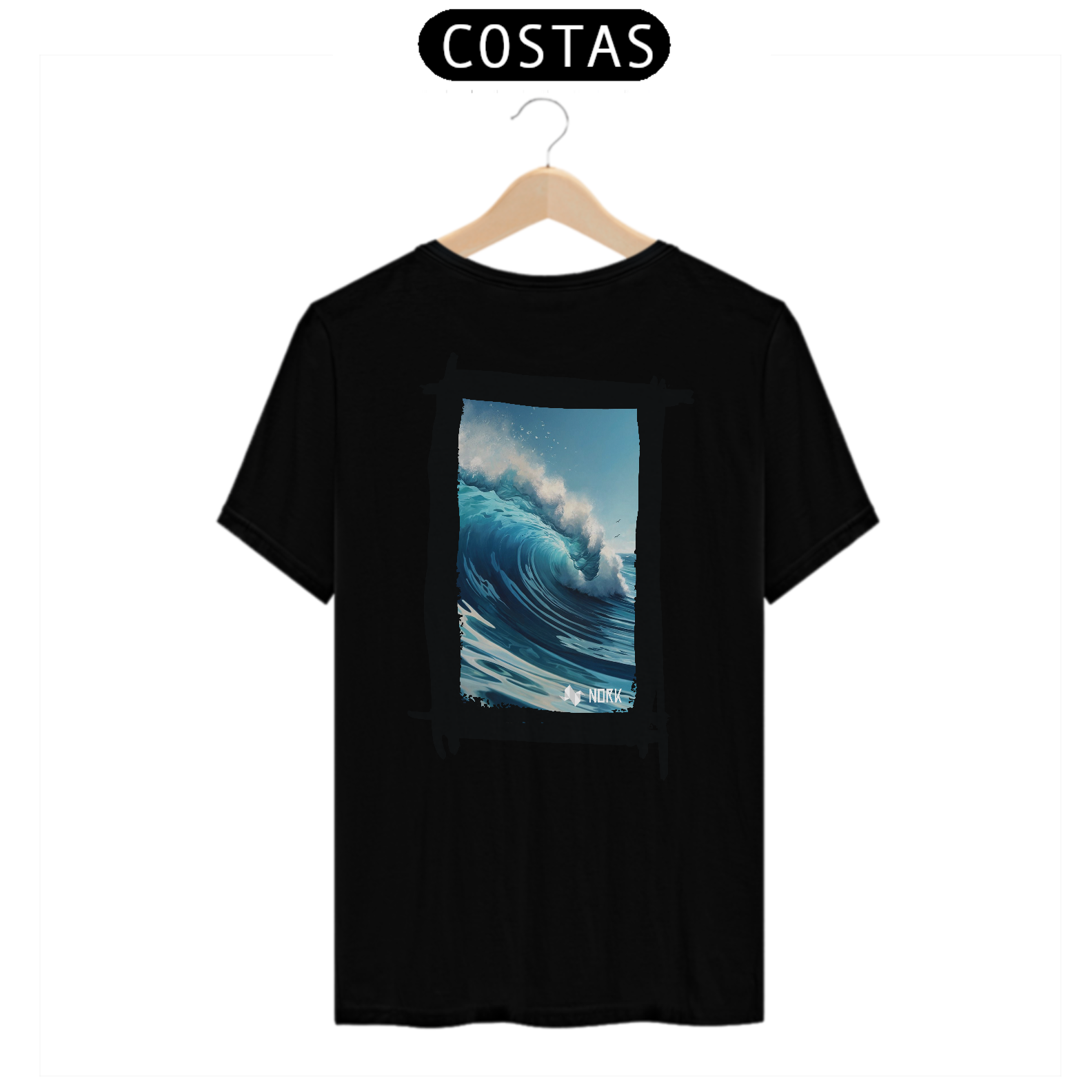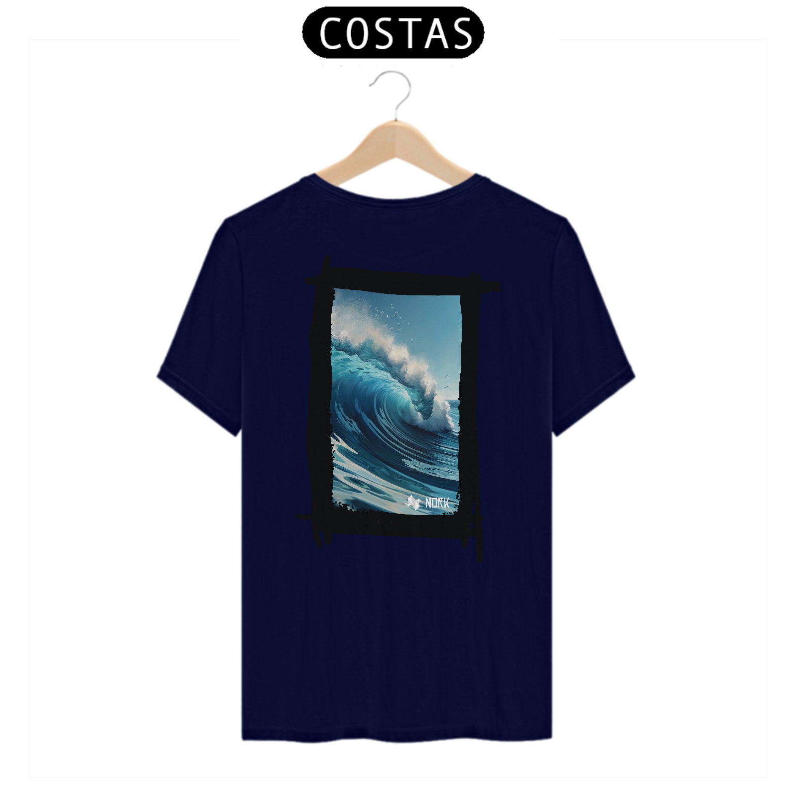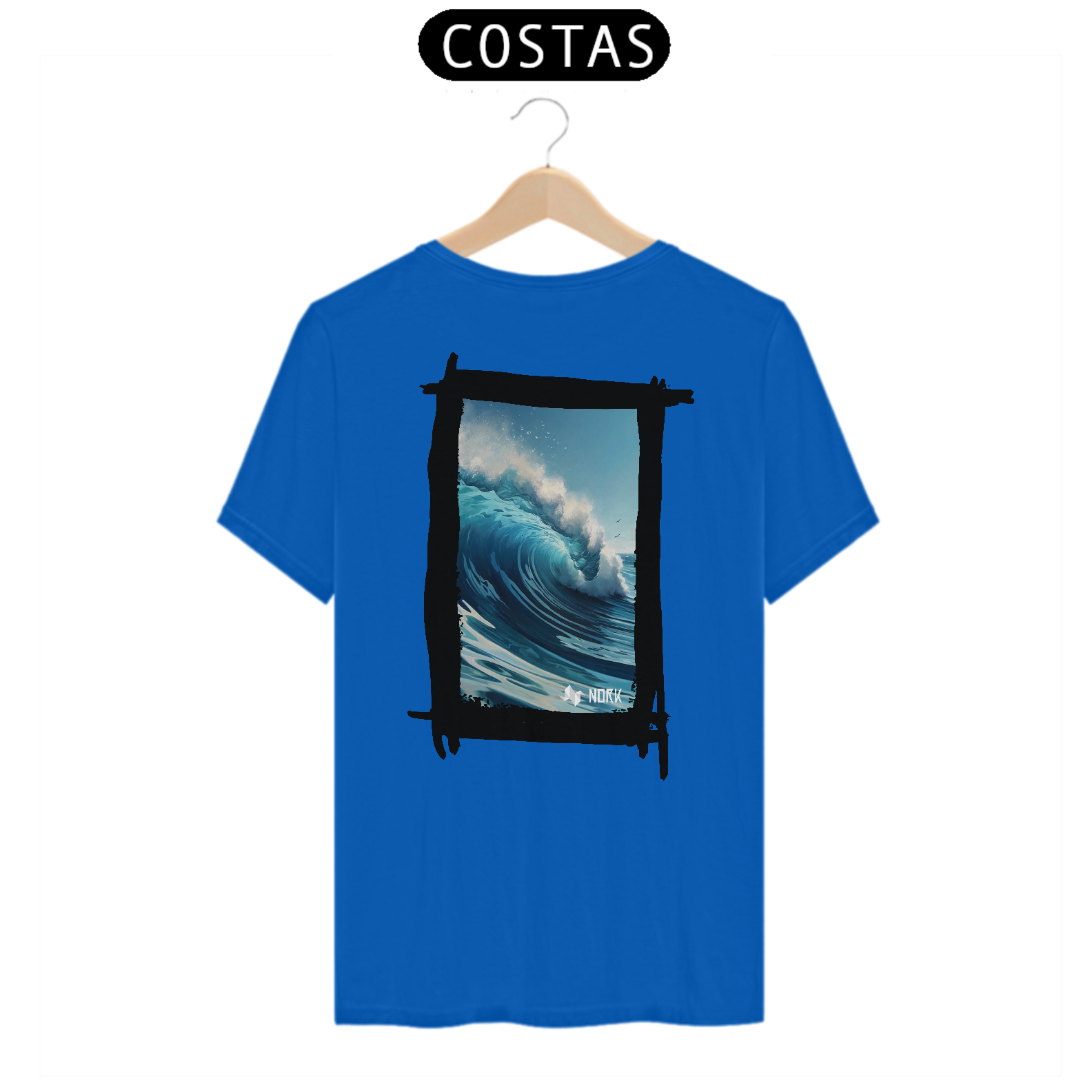 A camisa apresenta uma arte impactante e vibrante que captura a força e o movimento de uma onda perfeita no oceano. O design destaca tons intensos de azul que variam do mais profundo ao mais claro, criando um contraste dinâmico com a espuma branca no topo da onda, que parece se dissolver no ar. Pequenos detalhes, como as gotas de água e as aves voando ao fundo, adicionam realismo e profundidade à composição, transmitindo a sensação de liberdade e conexão com a natureza. O visual é ideal para quem busca expressar energia e estilo, trazendo a beleza do mar para o cotidiano. O logo da Nork aparece discretamente na parte inferior, garantindo sofisticação sem desviar o foco da arte.