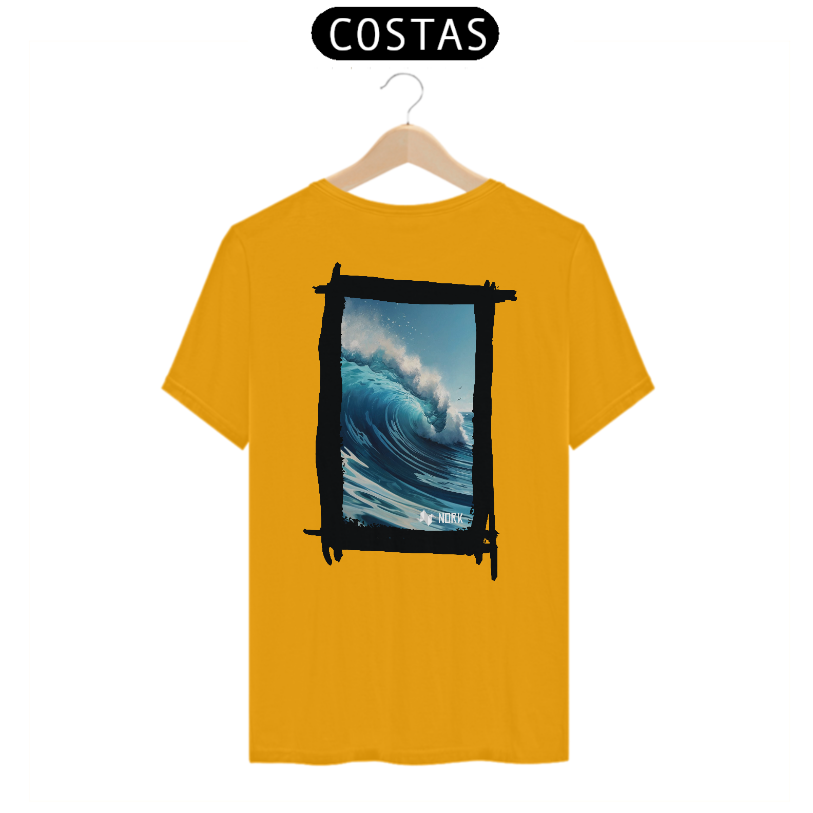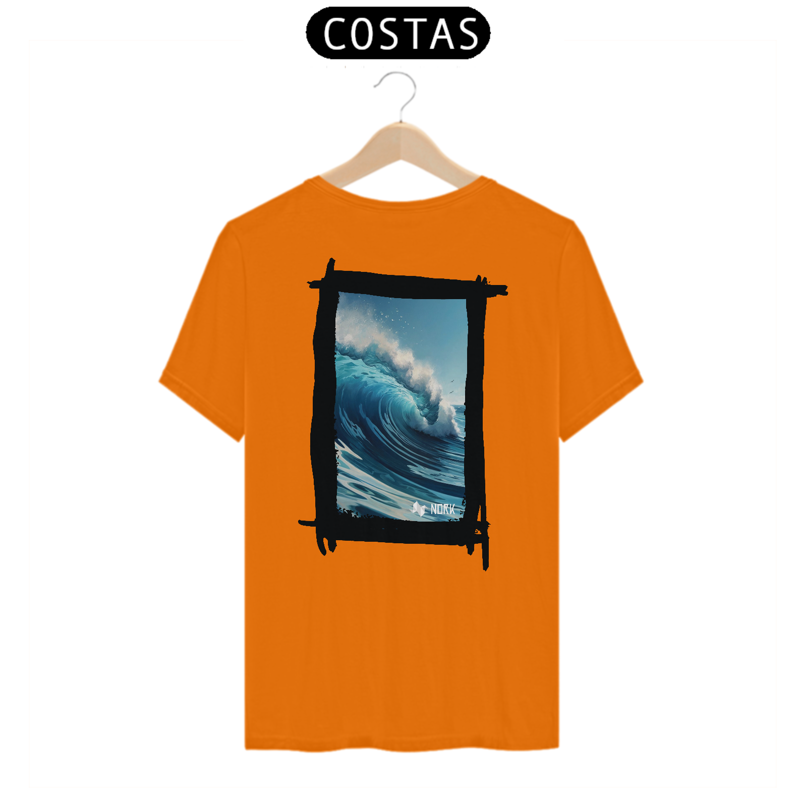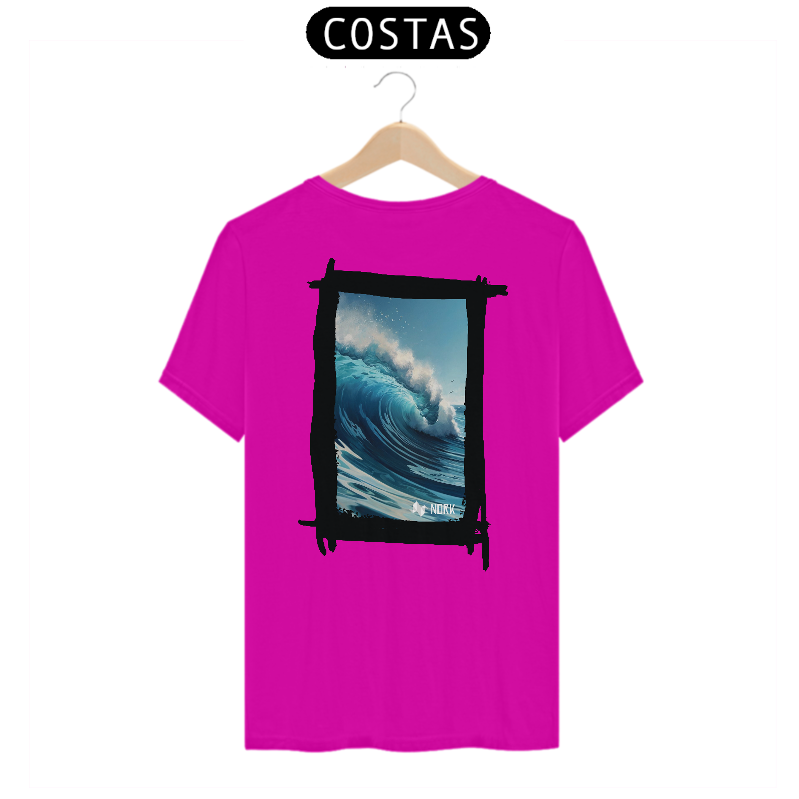A camisa apresenta uma arte impactante e vibrante que captura a força e o movimento de uma onda perfeita no oceano. O design destaca tons intensos de azul que variam do mais profundo ao mais claro, criando um contraste dinâmico com a espuma branca no topo da onda, que parece se dissolver no ar. Pequenos detalhes, como as gotas de água e as aves voando ao fundo, adicionam realismo e profundidade à composição, transmitindo a sensação de liberdade e conexão com a natureza. O visual é ideal para quem busca expressar energia e estilo, trazendo a beleza do mar para o cotidiano. O logo da Nork aparece discretamente na parte inferior, garantindo sofisticação sem desviar o foco da arte.