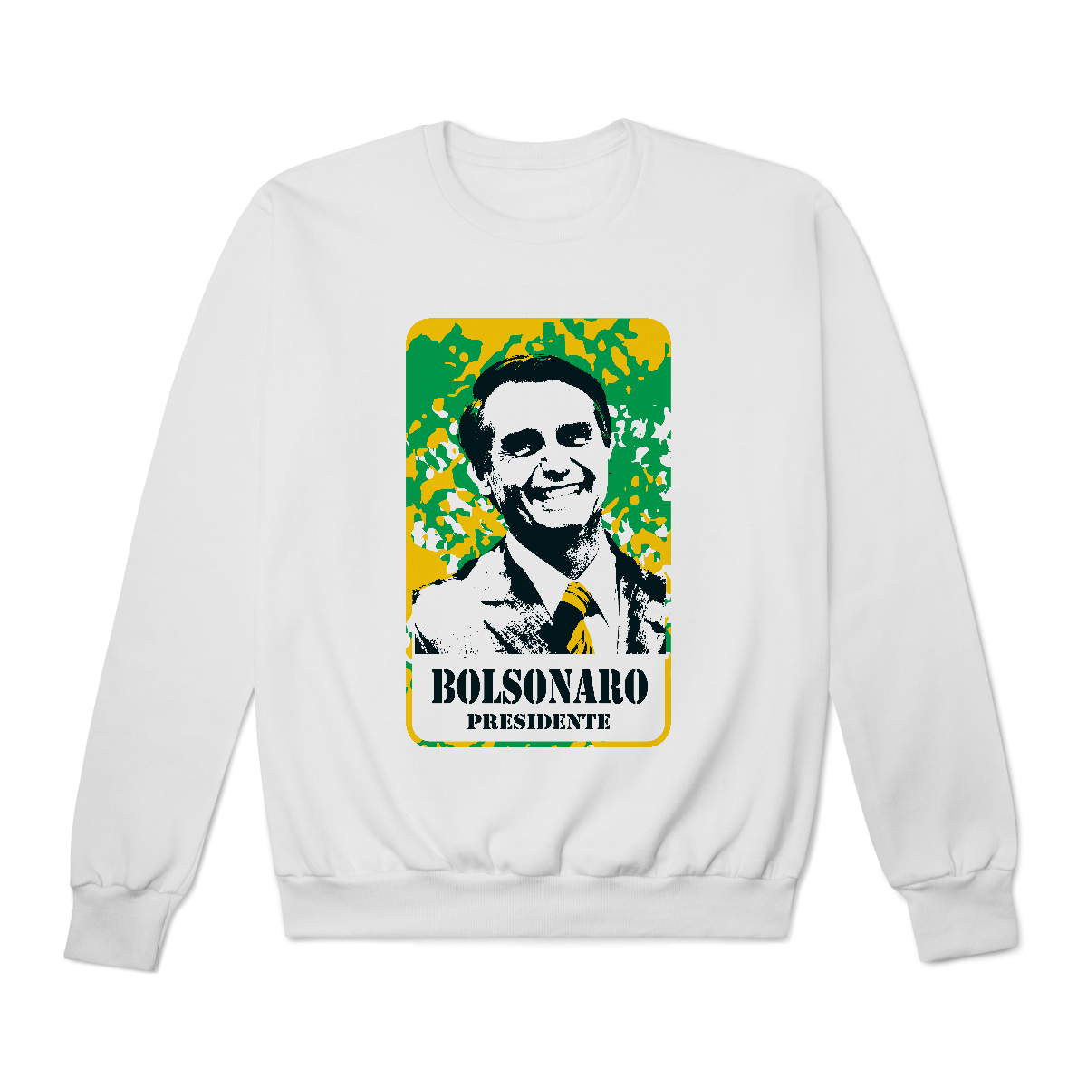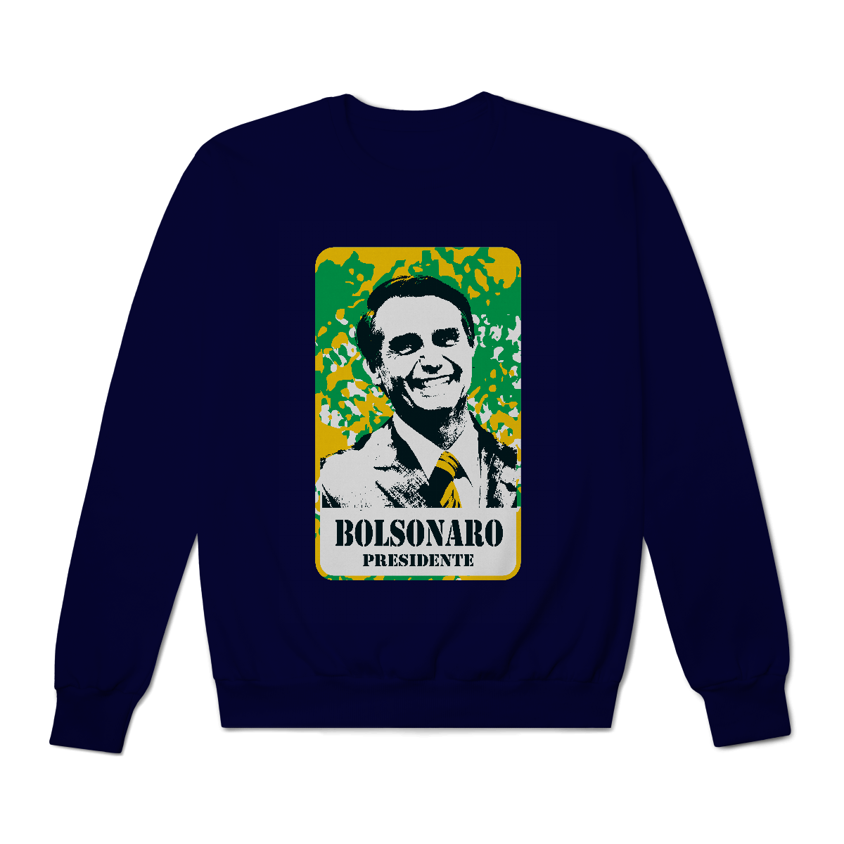 Com um ar de propaganda antiga, o rosto sorridente do ex-presidente ganha contornos de um cartaz de campanha, reforçado pela tipografia stencil em caixa alta que grita: BOLSONARO PRESIDENTE. A imagem parece congelada num momento icônico, entre o carisma e a controvérsia — como toda peça que provoca debate.