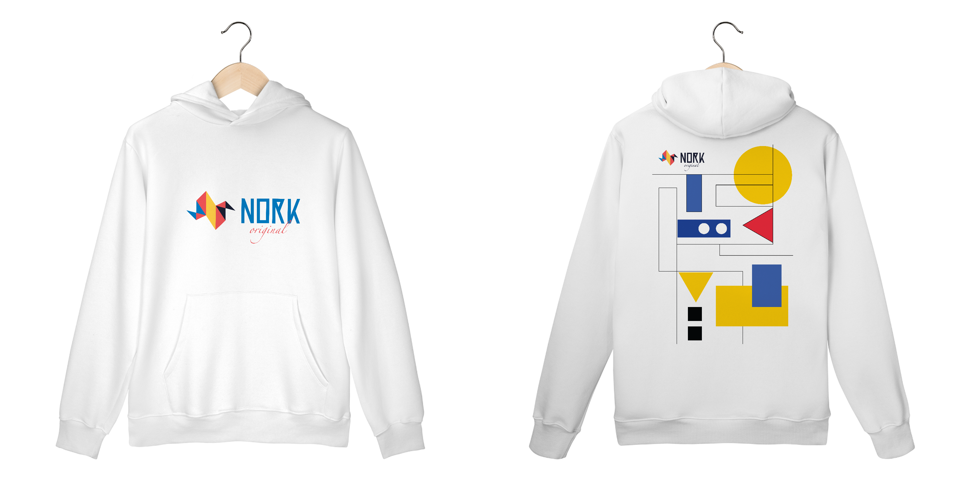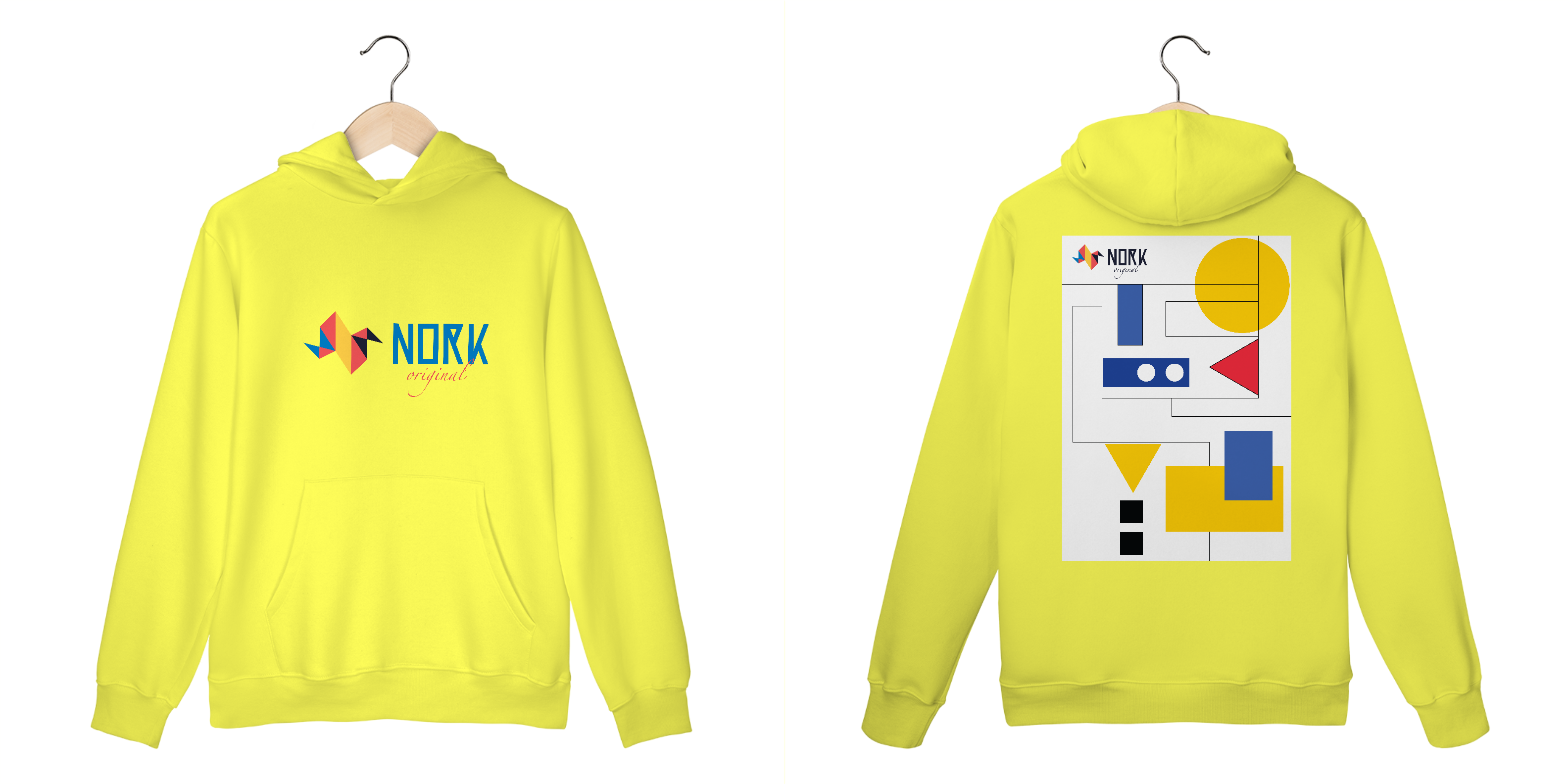 Coleção Nork Bauhaus traduz a essência minimalista e vanguardista do movimento que transformou o design moderno. Linhas finas traçam blocos que parecem suspensos, enquanto círculos, retângulos e triângulos em amarelo, azul e vermelho criam um jogo geométrico equilibrado, remetendo à busca pela harmonia entre forma e função.