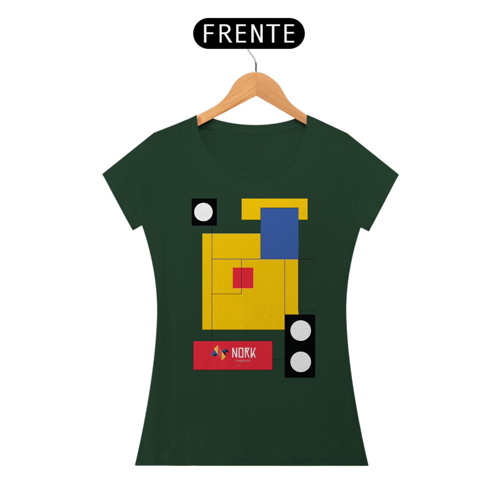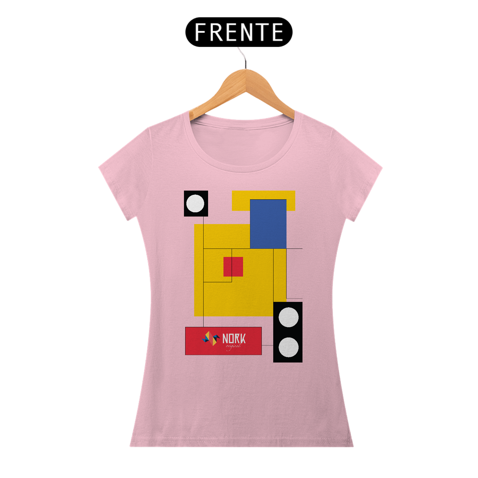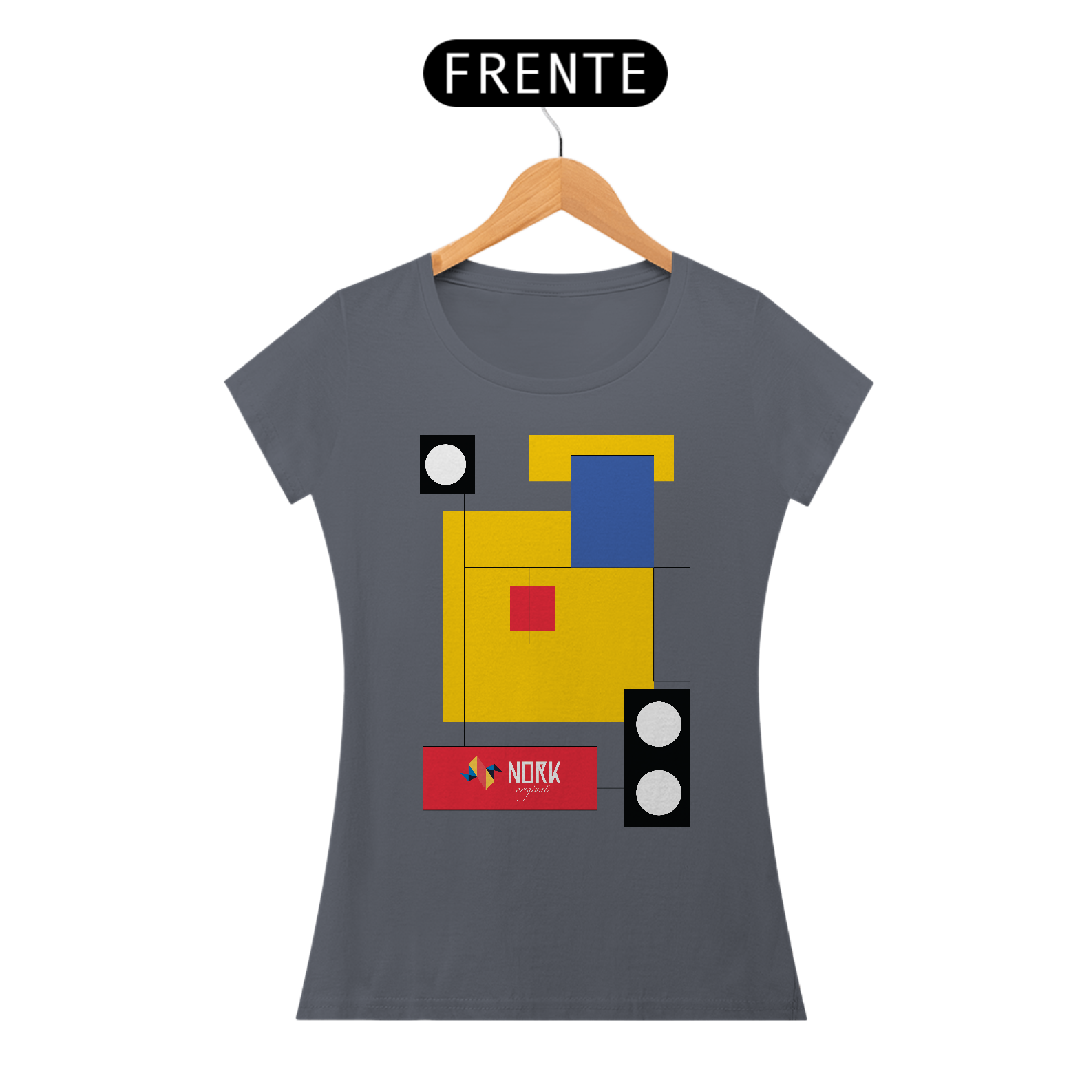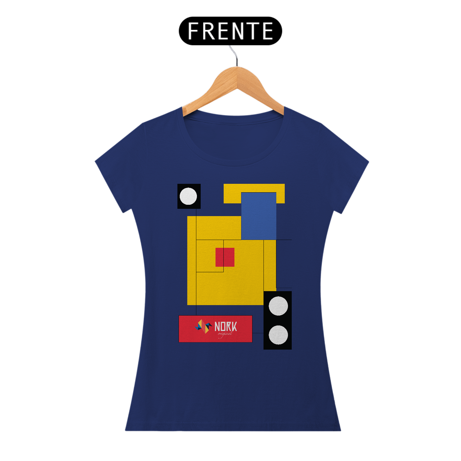 Esta camisa marcante da Coleção Nork Bauhaus apresenta um arranjo geométrico onde blocos de cor em amarelo, azul, vermelho e preto se conectam por finas linhas retas, criando um visual limpo e arrojado. As sobreposições retangulares, contrastadas por círculos em preto e branco, remetem à busca pelo equilíbrio entre forma e função, típica do movimento Bauhaus. O logo Nork Original em um retângulo vermelho traz destaque e identidade, reforçando o aspecto vanguardista da composição.